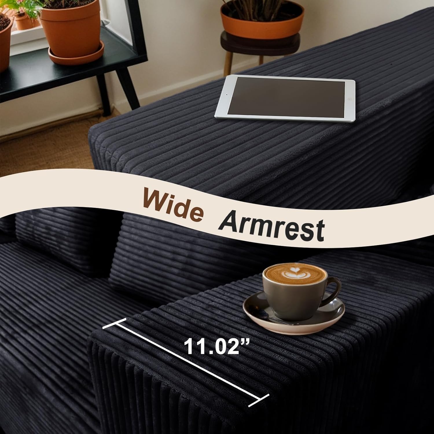 Premium Corduroy Fabric: Revel in the sweet softness of our upgraded corduroy fabric, offering silky touch and coziness. The superior durability and subtly sheen of this breathable material make our couch with chaise stay looking fresh and charming for years of use, elevating the aesthetics of your space