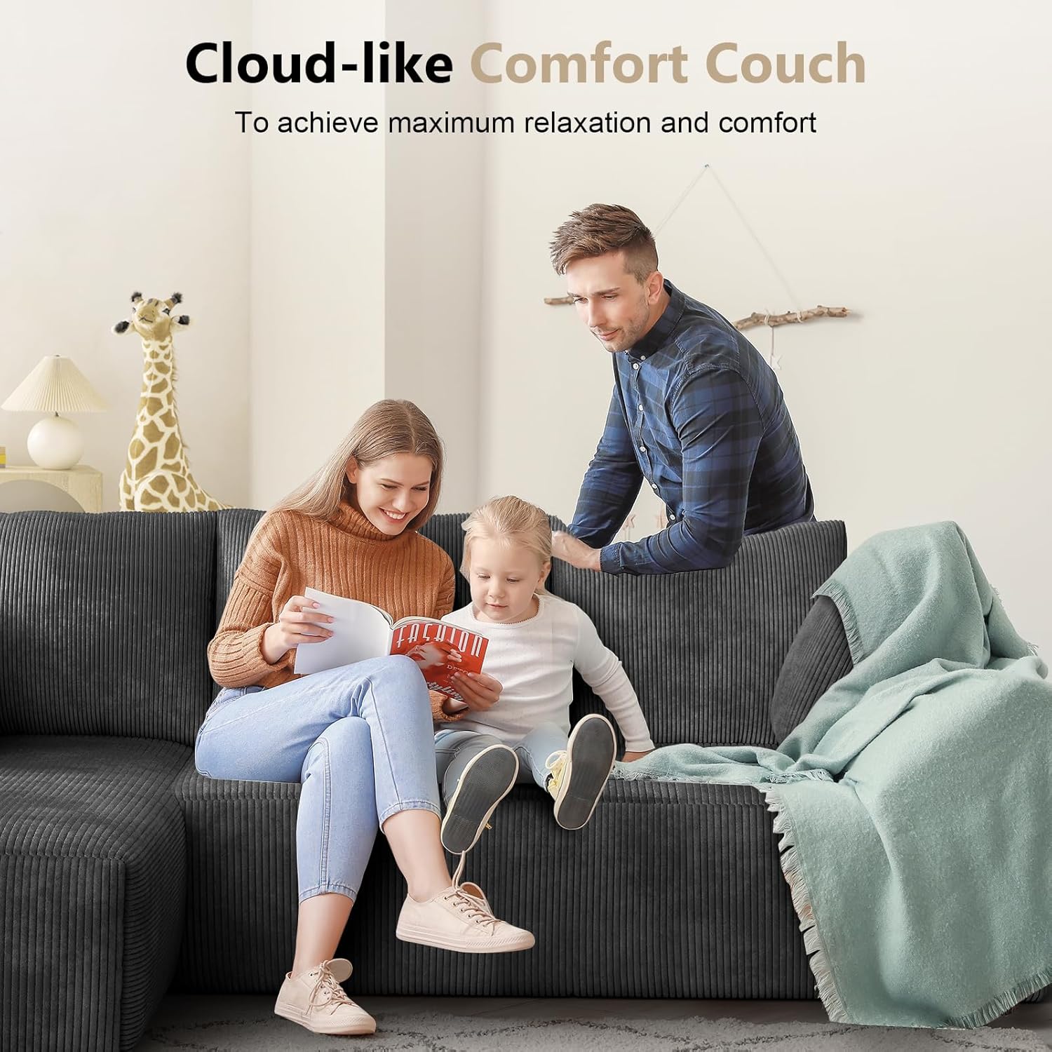 [Enhanced Corduroy Fabric] Experience the luxury of our premium corduroy fabric, designed for exceptional comfort and lasting softness. This stain-resistant material offers easy care with elegant sophistication, maintaining its plush beauty year after year. The modern silhouette of our Cloud Couch Modular Sectional elevates your living space, combining timeless style with DIY-friendly modular design for personalized comfort.