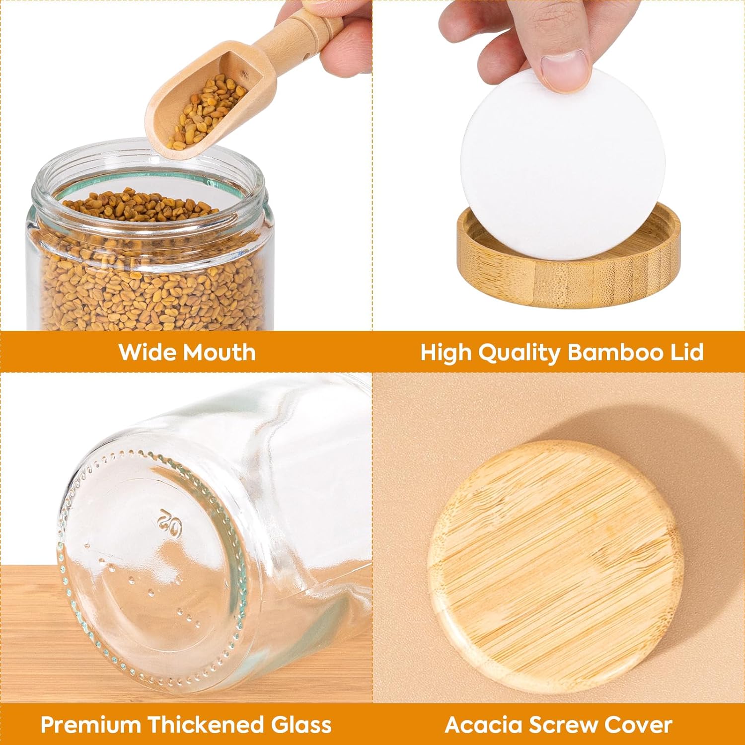 12-pack 10oz Glass Spice Jars with Labels, Spice Containers with 12 Wooden Spoons, Airtight Seasoning Containers with Bamboo Lids