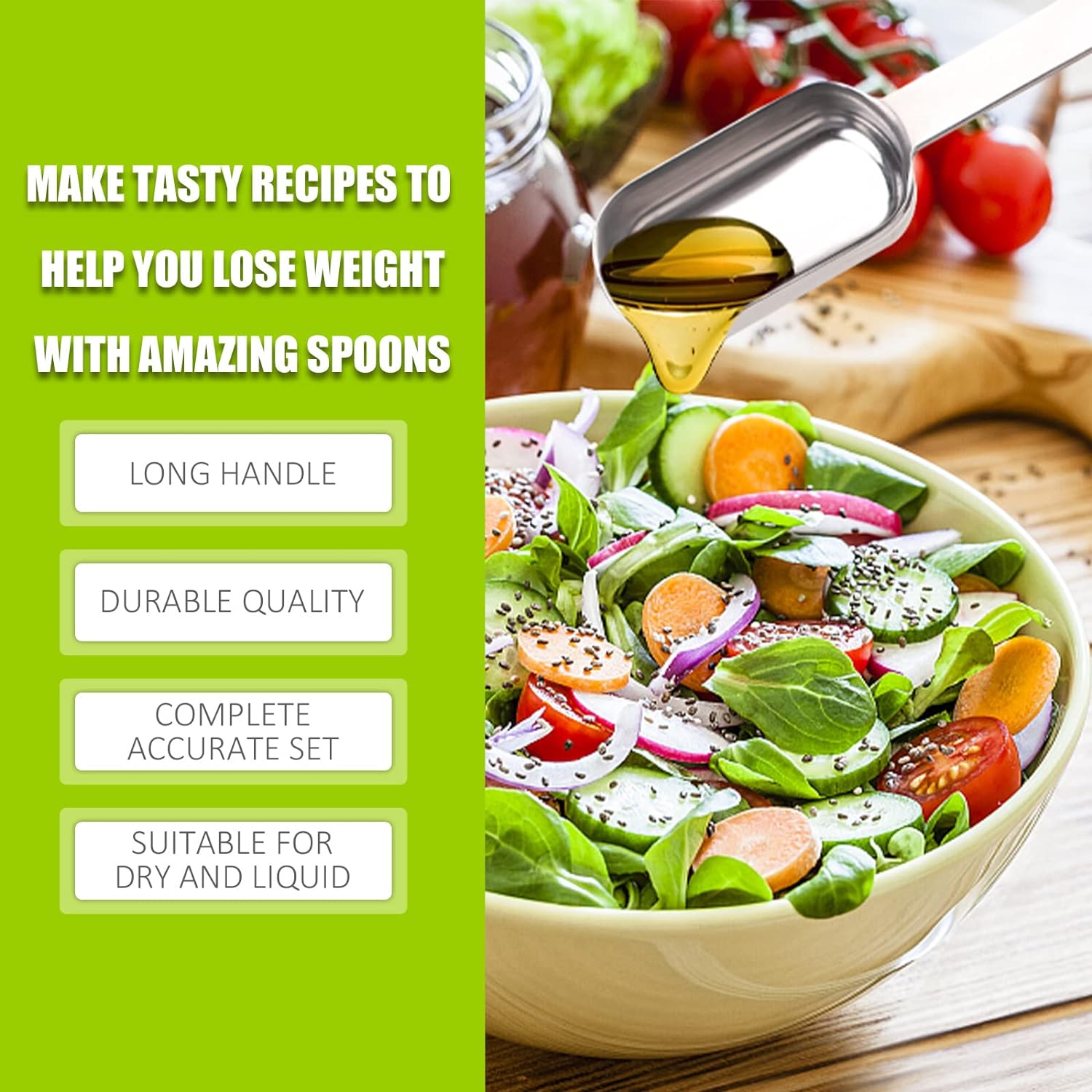 【Make Life Better】We know how important a good stainless measuring spoons is to enhance the cooking experience. We have made a lot of efforts and attempts to come up with a product that we are proud of. We are confident that the long handle measuring spoons will live up to your expectations