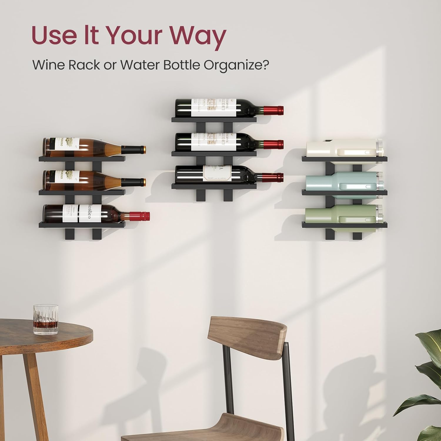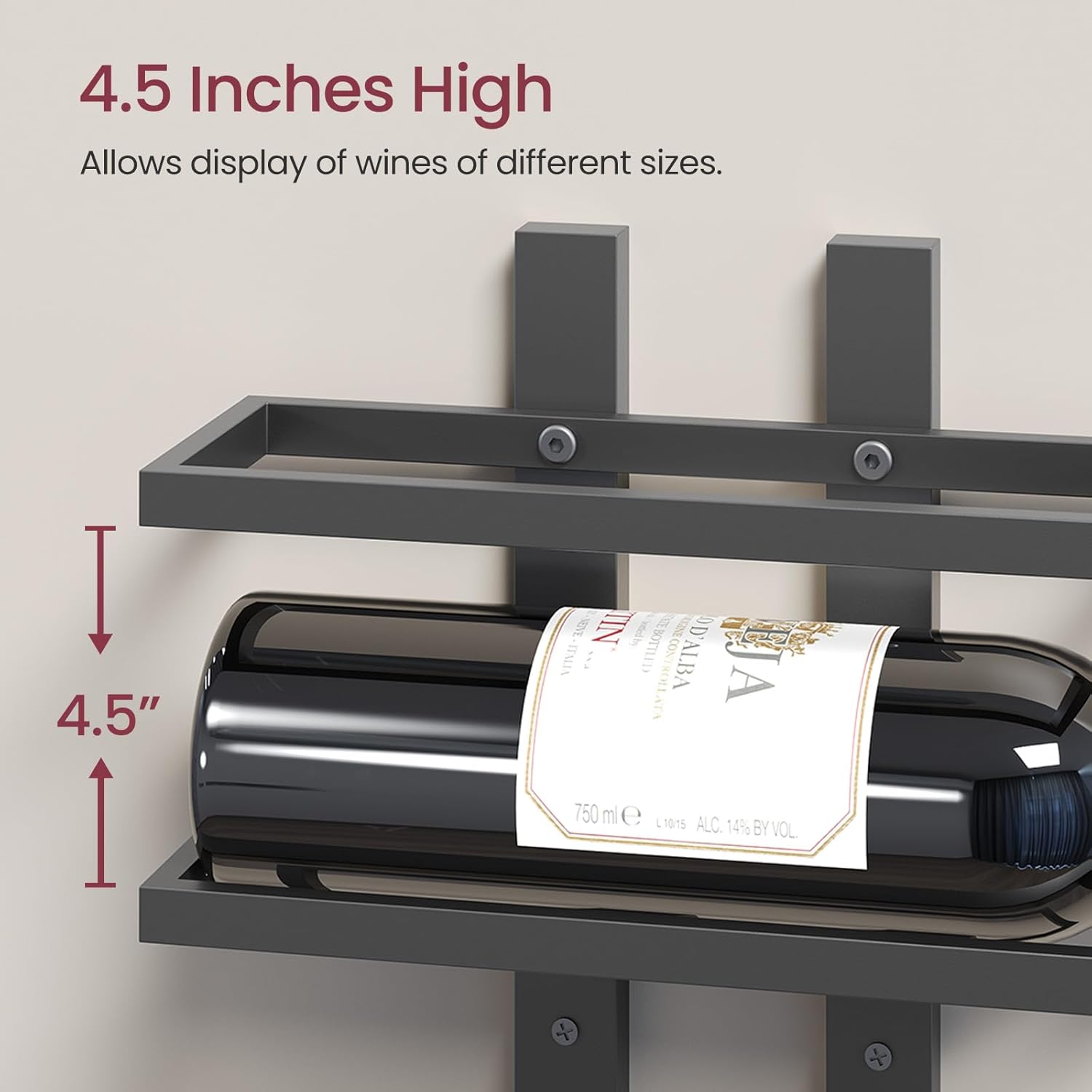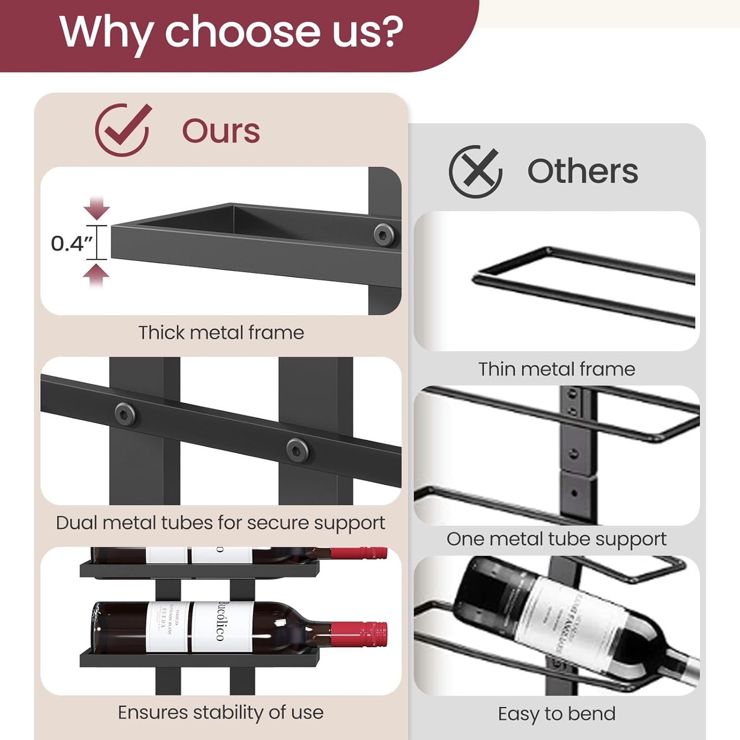 【Durability You Can Trust】Crafted with metal and high-strength welding, the rack features a reinforced dual-bar support system on the back, secured to the wall with multiple screws. This design prevents bending, guarantees stable bottle placement, and ensures long-lasting use—ideal for daily storage or displaying your collection.