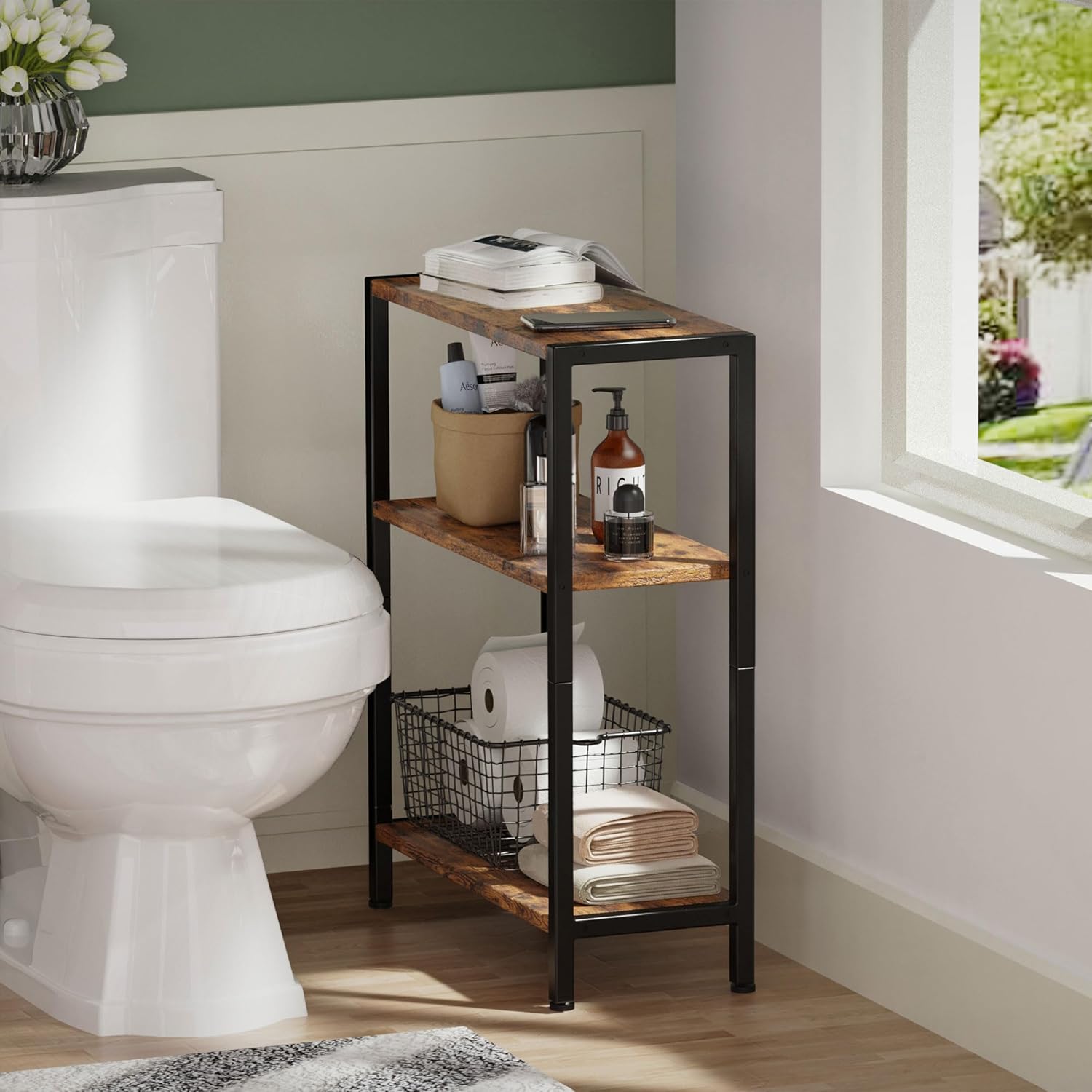 3-Tier Side Table, Small End Table, Sofa Side Table for Narrow Spaces, Slim End Table, Nightstand Table, for Living Room Bedroom Office, Rustic Brown