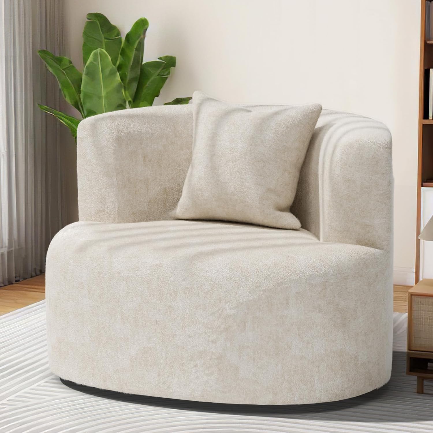 360° Modern Swivel Accent Chair, Comfy Swivel Barrel Chair, Upholstered Round Chair with Pillow, Round Reading Chair for Living Room, Nursery, Bedroom, Beige