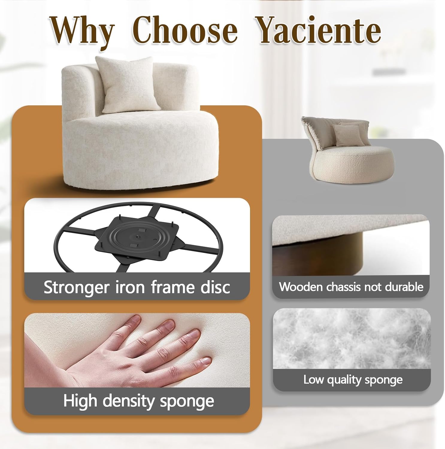 【Good Fabric】The upholstered chair features premium Chenille fabric upholstery, delivering cloud-like softness with hypoallergenic properties. The high-twist yarn construction enhances pilling resistance while maintaining breathability. The high-resilience foam core of the Accent swivel chair shows good compression recovery in ASTM testing.