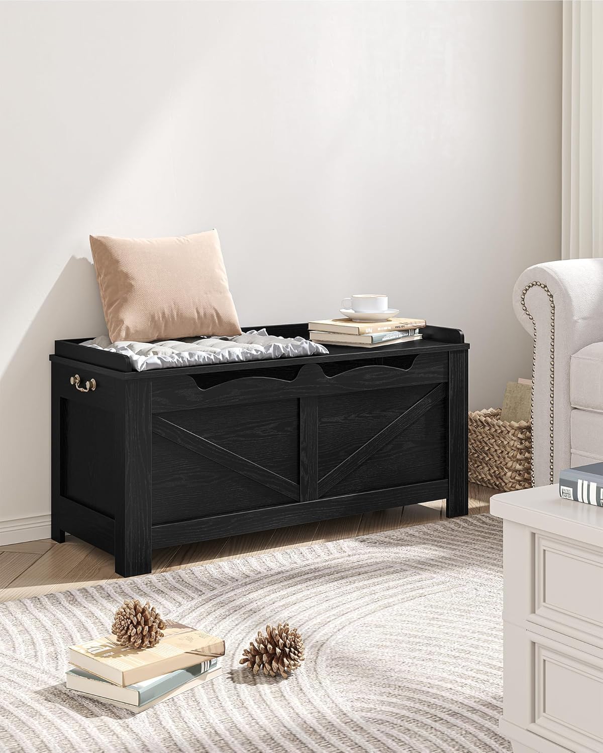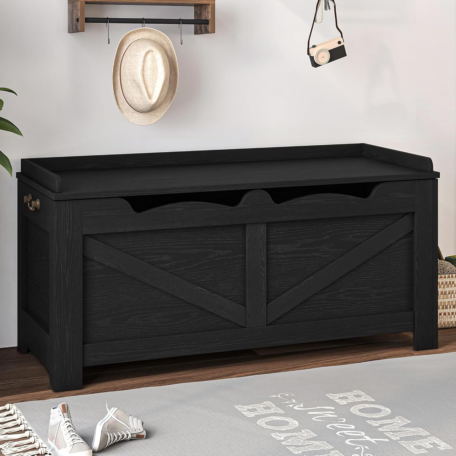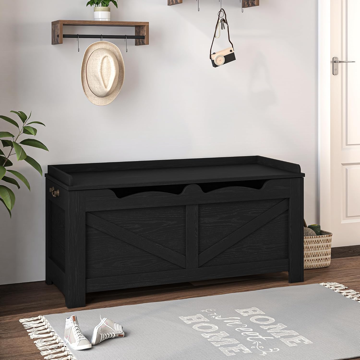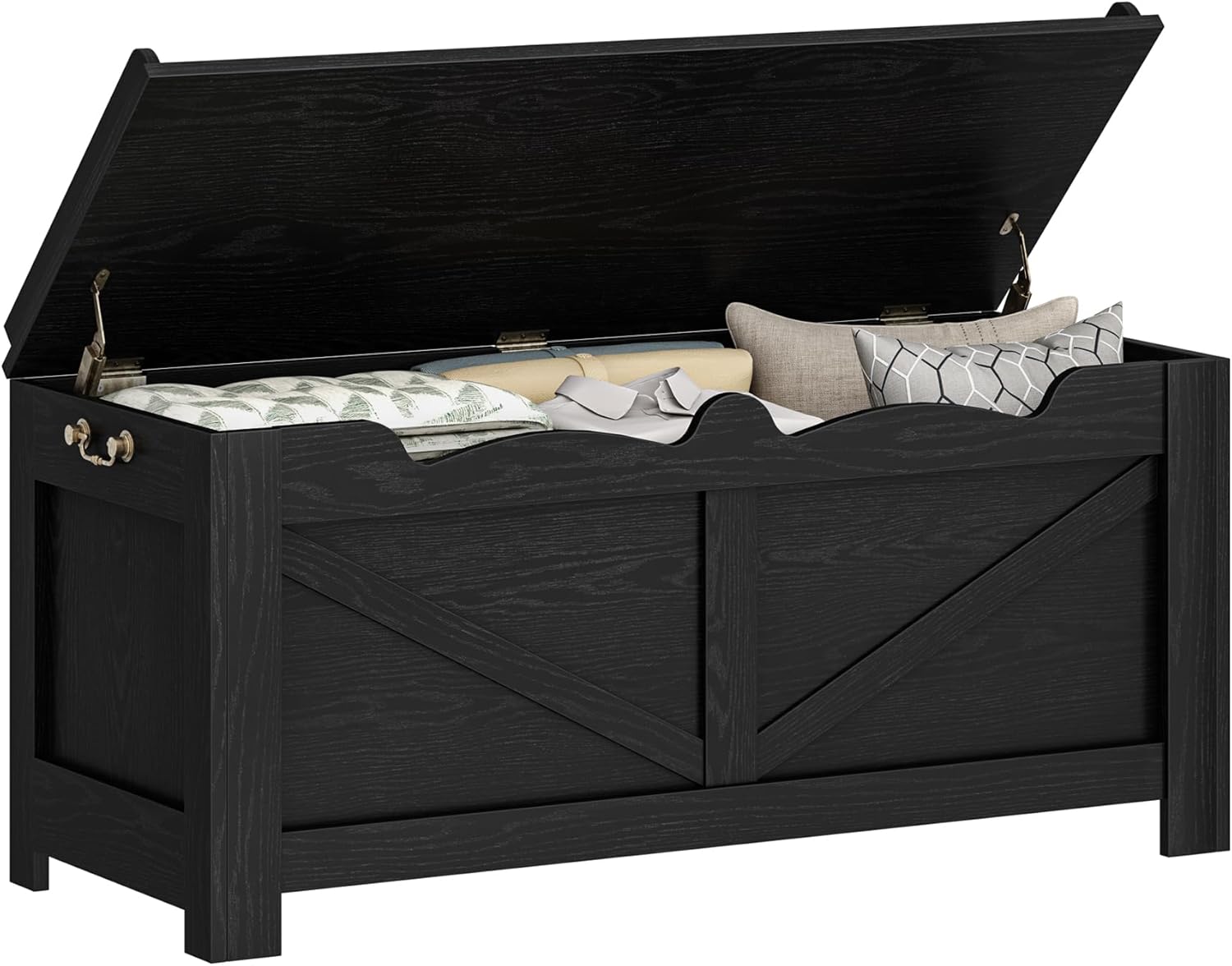 39.4″ Storage Bench, Storage Chest, Lift-Top Storage Trunk with 2 Safety Hinges, Wooden Storage Box Chest Organizer for Bedroom, Entryway, Living Room, Black SB04504X