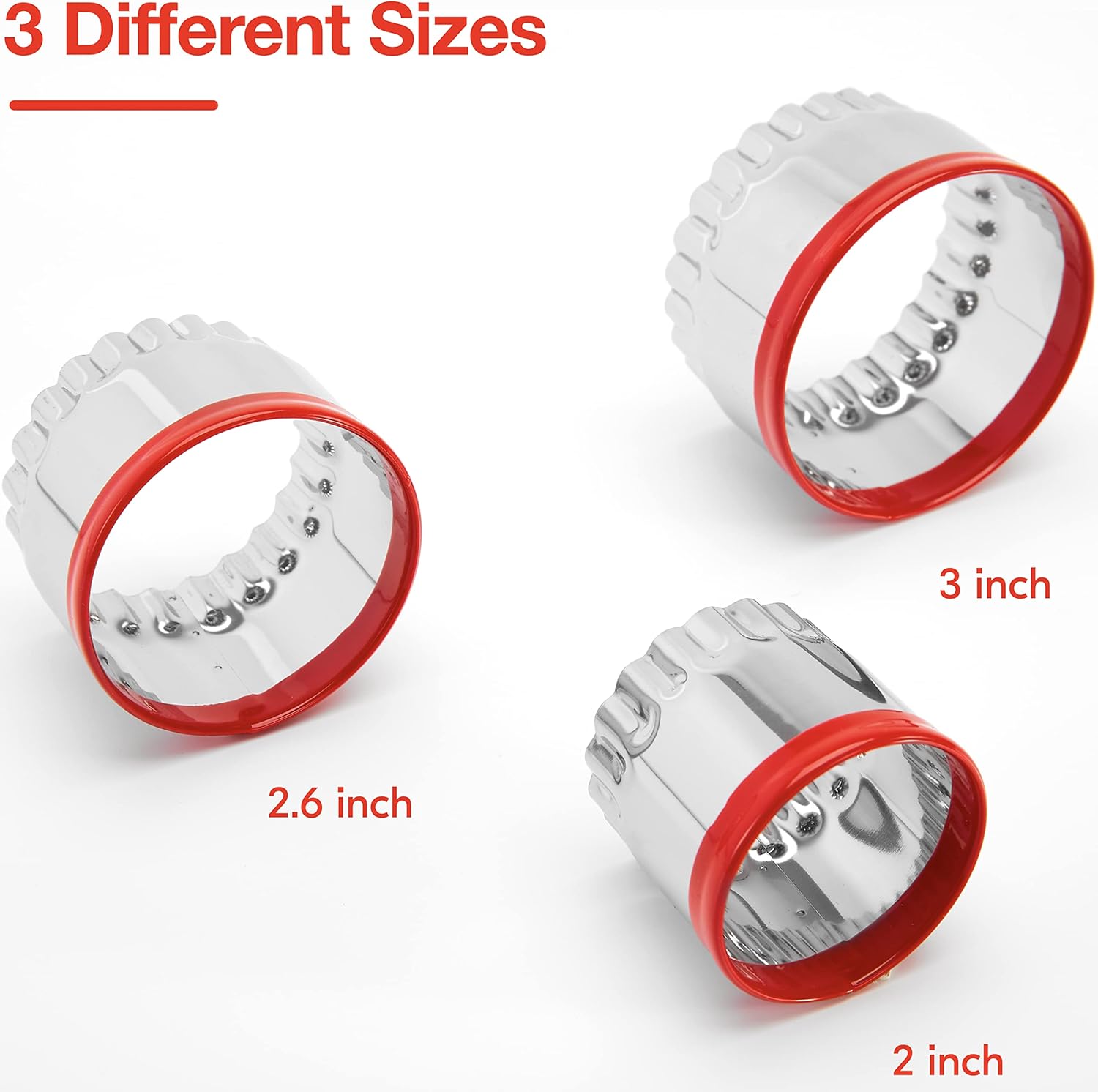 3Pcs Fluted Round Cookie Cutters – 2″ & 2.6″ & 3″, Heavy Duty Food-Grade Stainless Steel, Mini Biscuit Cutter, Unique Design with Protective Red Top PVC