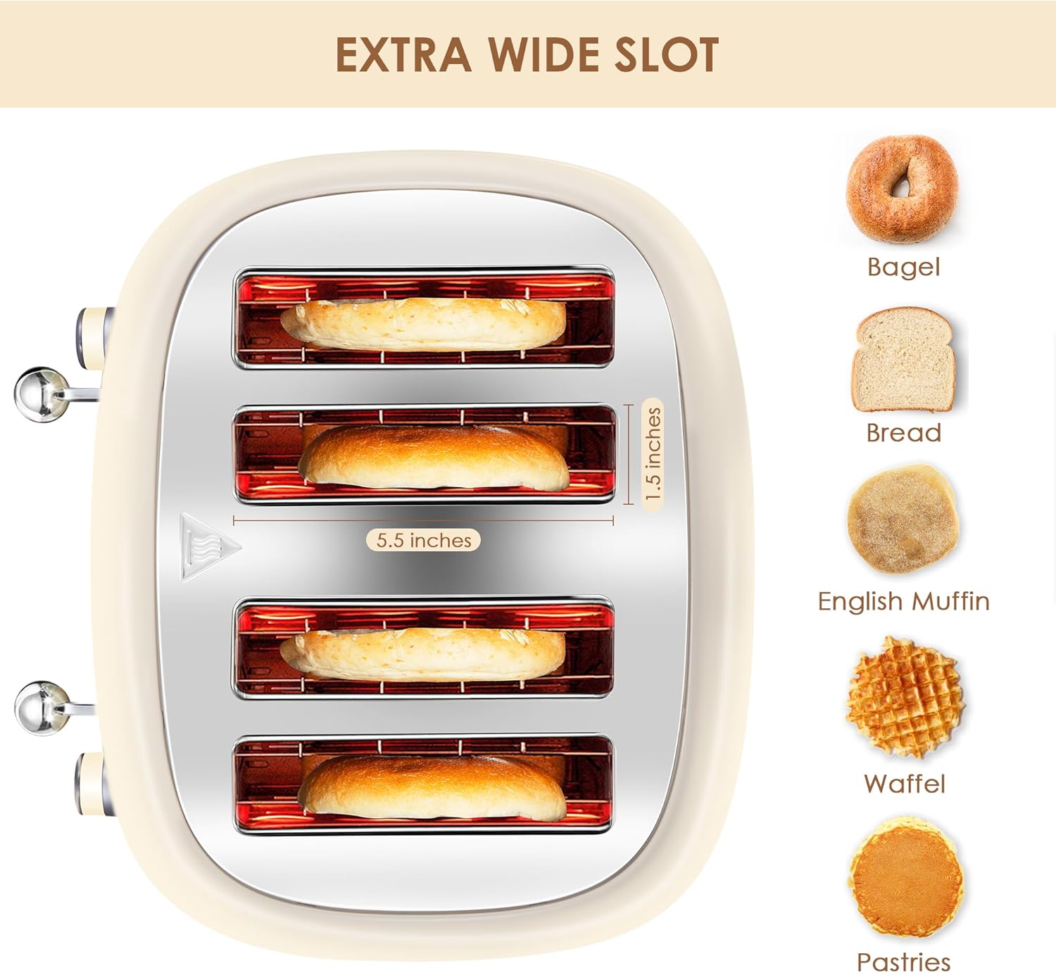 Retro Design Toaster: With compact and vitage design, this 4 slice toaster can save space on your countertop. It is also a great present for housewarming, Thanksgiving, Christmas, birthday, wedding, etc.