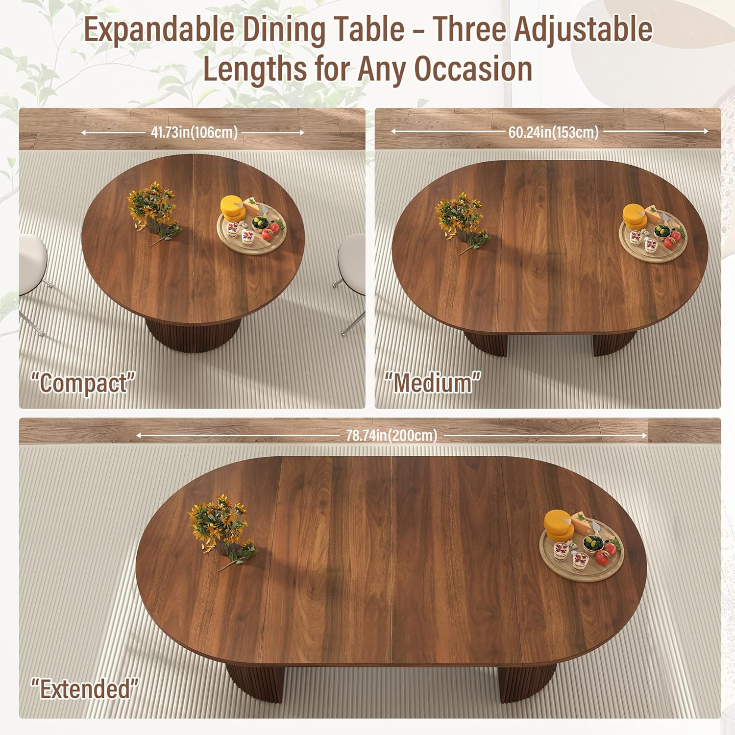 41 in-78 in Extendable Dining Room Table for 4-8, Round Expandable Kitchen Table with Fluted Base, Modern Farmhouse Oval Dinner Tables for Dining Room Kitchen Living Room (Walnut)