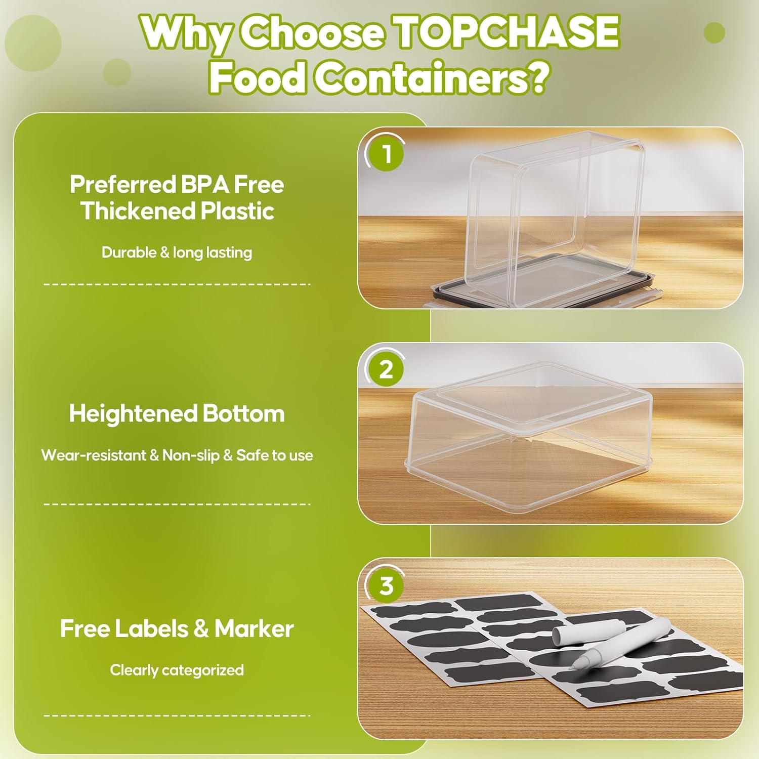 BPA-Free & Food-Safe Materials – Crafted from upgraded food-grade plastic, our BPA-free food containers ensure safe, odor-free storage for you and your family. These containers are microwave safe (without lids), dishwasher safe, and freezer friendly—designed to simplify your daily routine