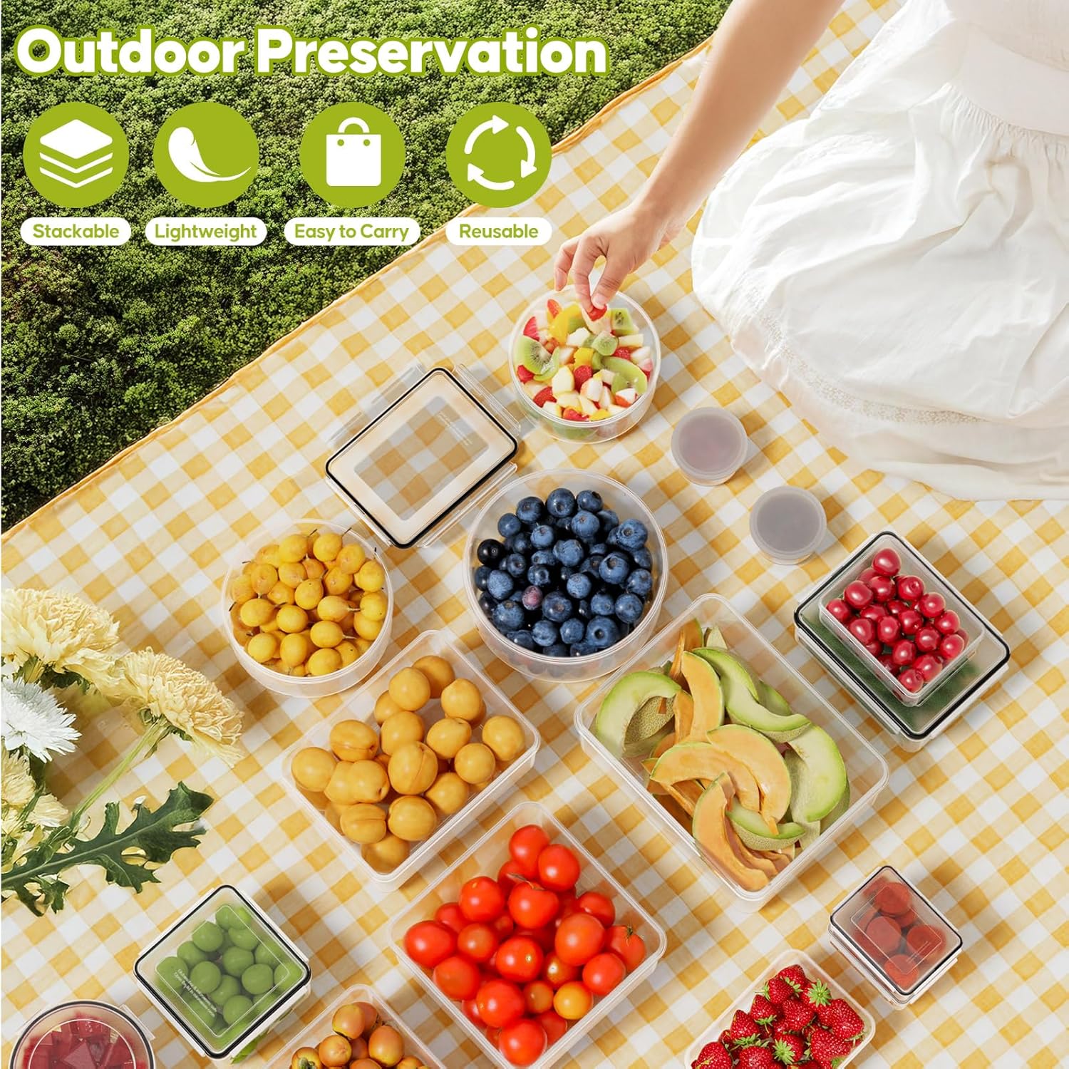 Multi-Purpose for Indoor & Outdoor Use – Whether it’s storing fruits, vegetables, sauces, cooked meals, or taking lunch on the go, our reusable containers are perfect for meal prep, picnics, BBQs, camping, or travel. Clear design lets you identify food at a glance