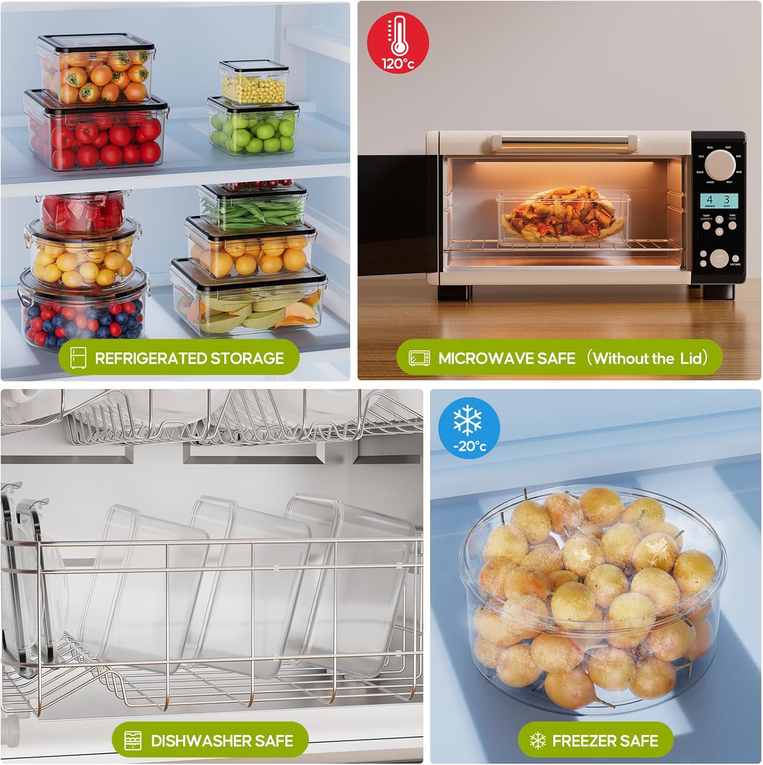 100% Leak-Proof & Airtight Seal – Each storage container is equipped with a premium silicone ring and 4 reinforced locking clips for a tight, secure seal. No more spills or fridge odors—keep food fresh longer with our truly airtight food storage containers