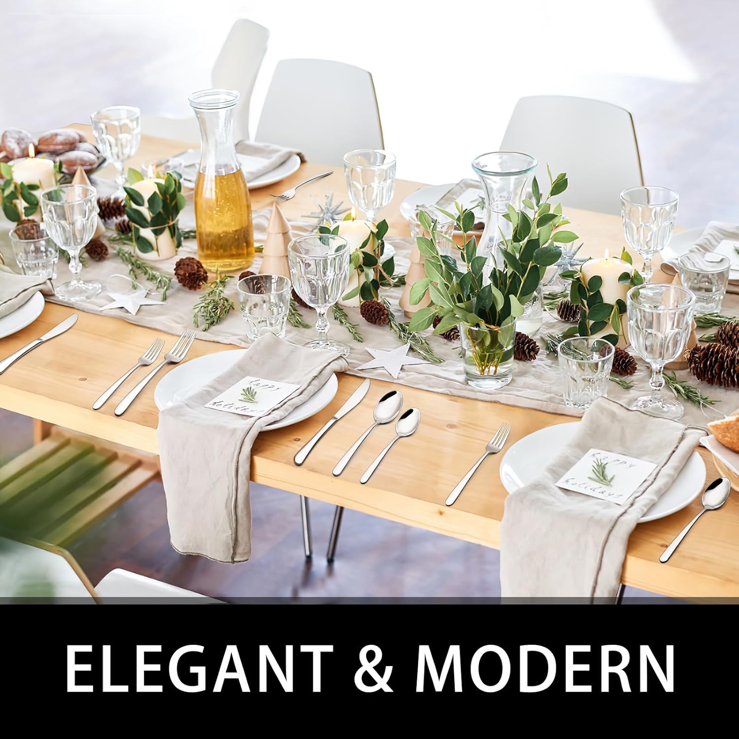 【COMFORTABLE DESIGN】: This flatware set has a classic silhouette with clean lines and polish-finish surface in all silver, a good choice to go with your existing tableware. The smooth edge of the handle is pleasure to hold, appropriate weight and perfect balance are added to ensure maximum comfort during use.