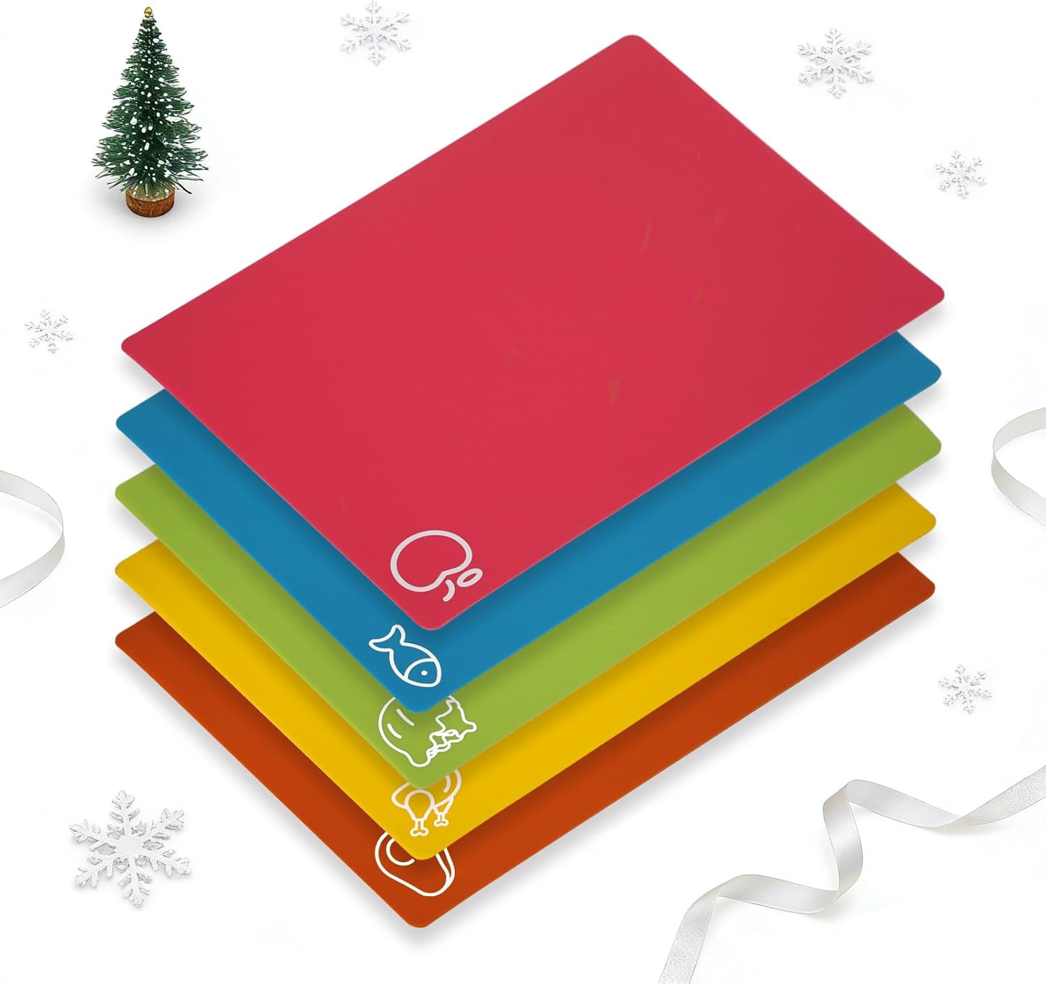 5 Pieces Flexible Cutting Boards, BPA Free Plastic Cutting Boards for Kitchen, Non Slip Cutting Mat for Meat and Vegetables, Thanksgiving