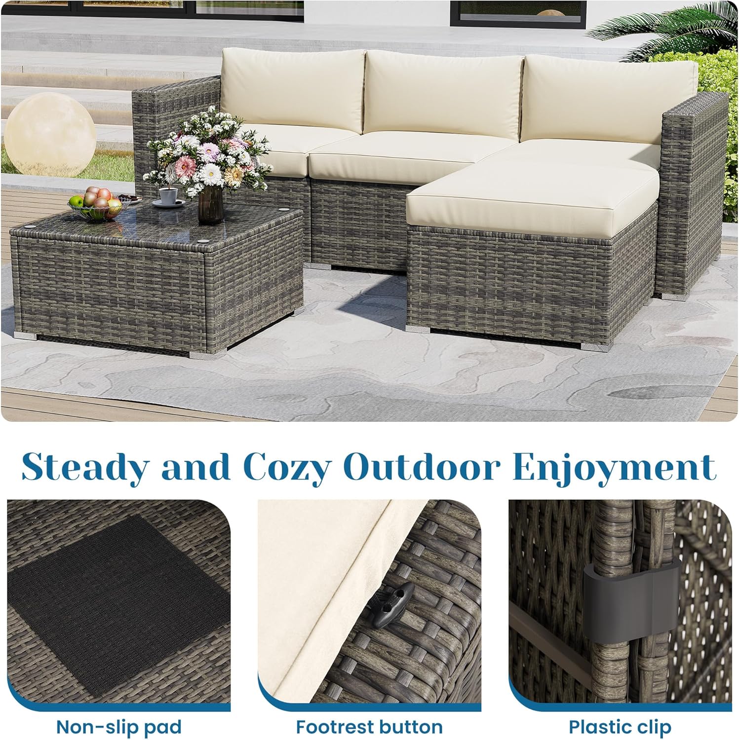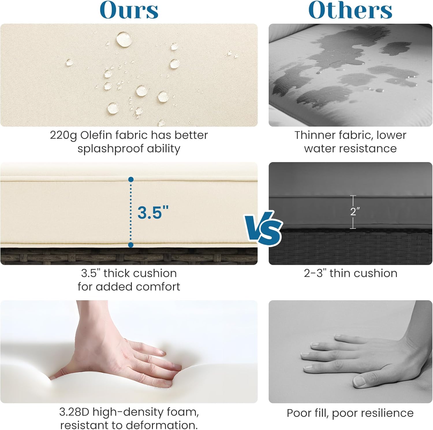 【Simple Setup & Flexible Layout】Putting this outdoor furniture together is a breeze—it includes all the needed hardware and a clear instruction manual. Once assembled, the modular pieces can be rearranged into different layouts, making this patio furniture set a stylish and practical addition to any home.