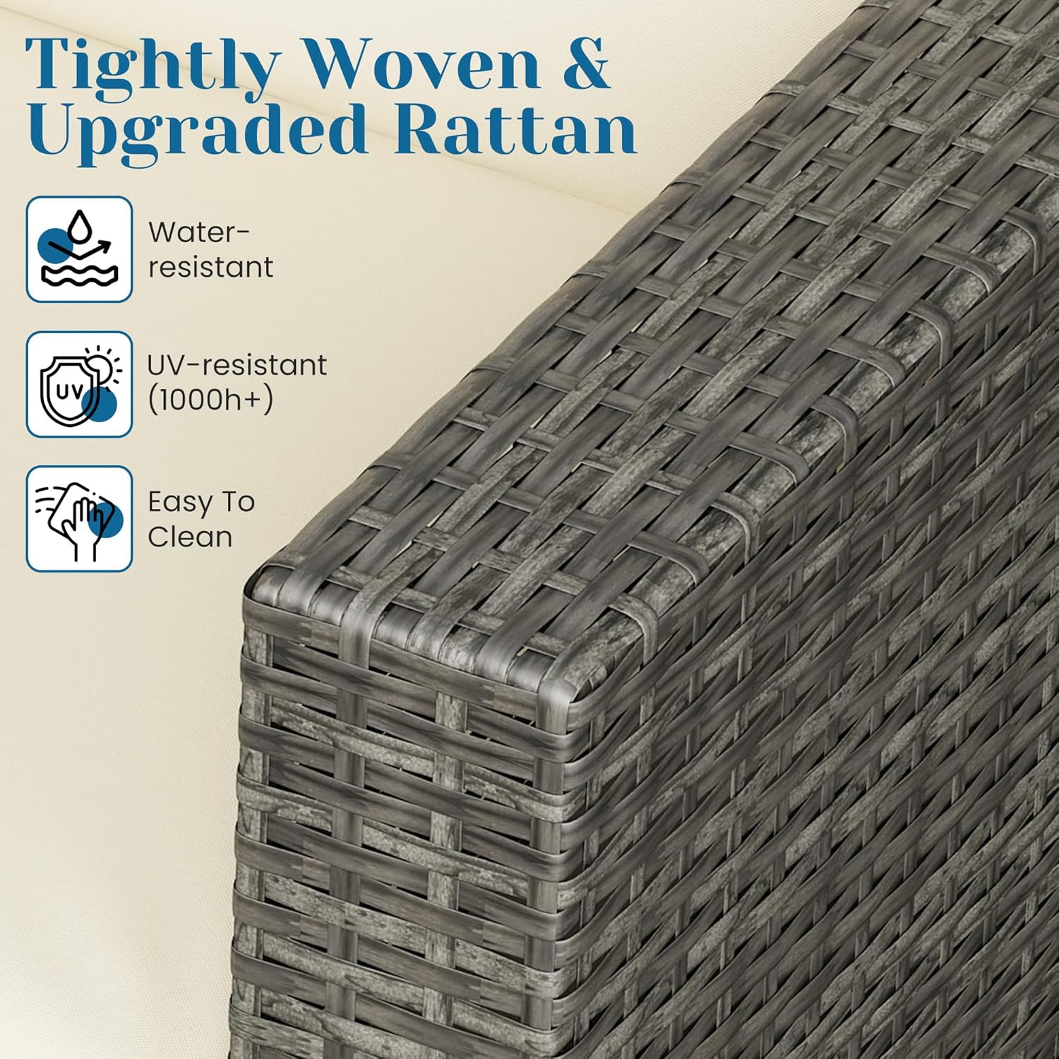 【Durability and Weather Resistance】Built with a sturdy steel frame and wrapped in all-weather polyethylene rattan, this patio furniture set combines strength and elegance—made to last through seasons of sun, rain, and backyard fun. Whether you’re shopping for the best patio deals or simply upgrading your garden space, this set is built to impress.
