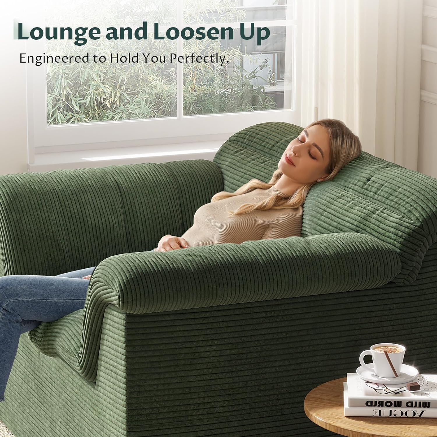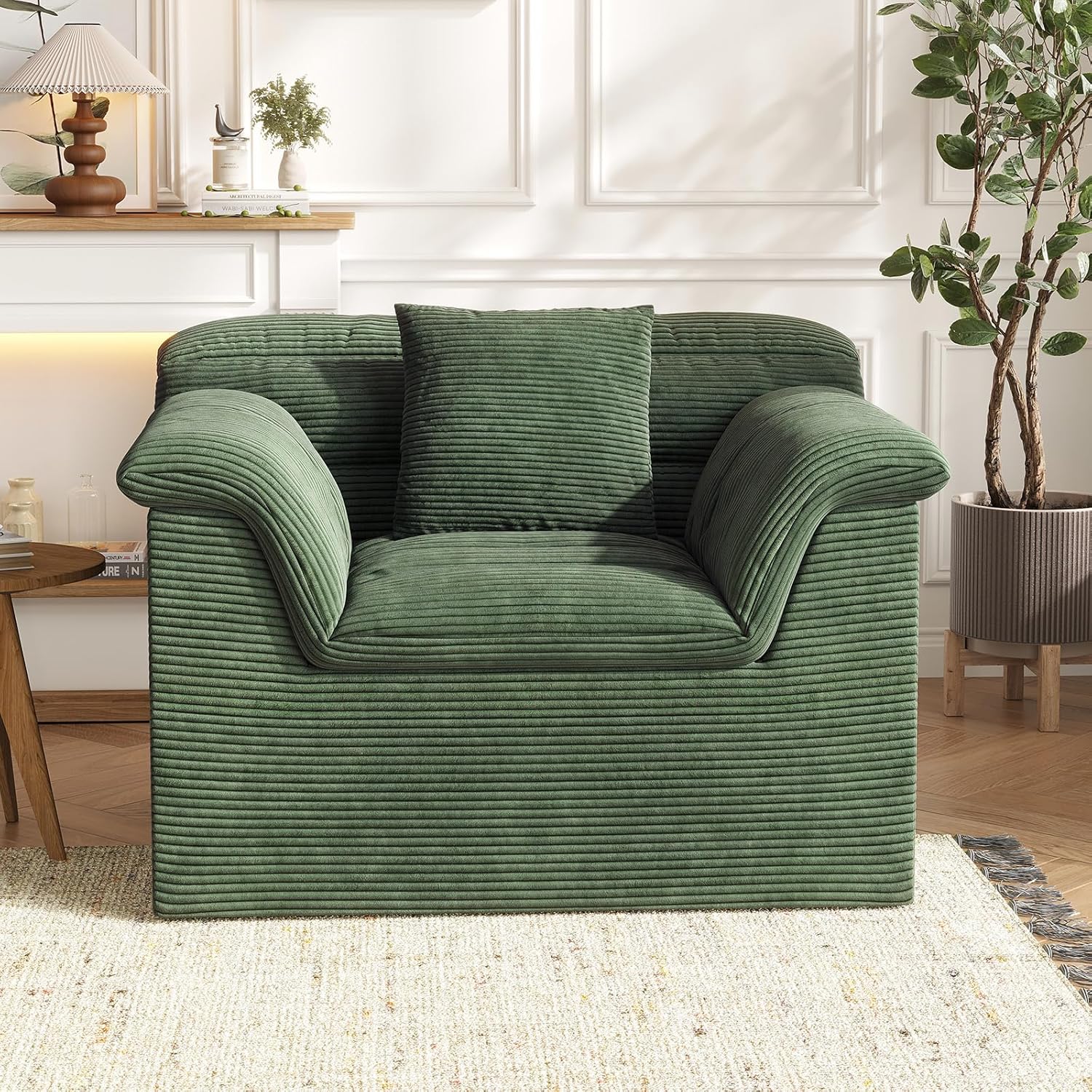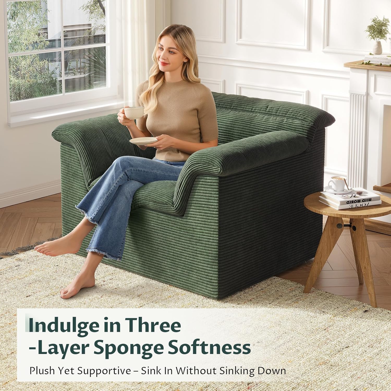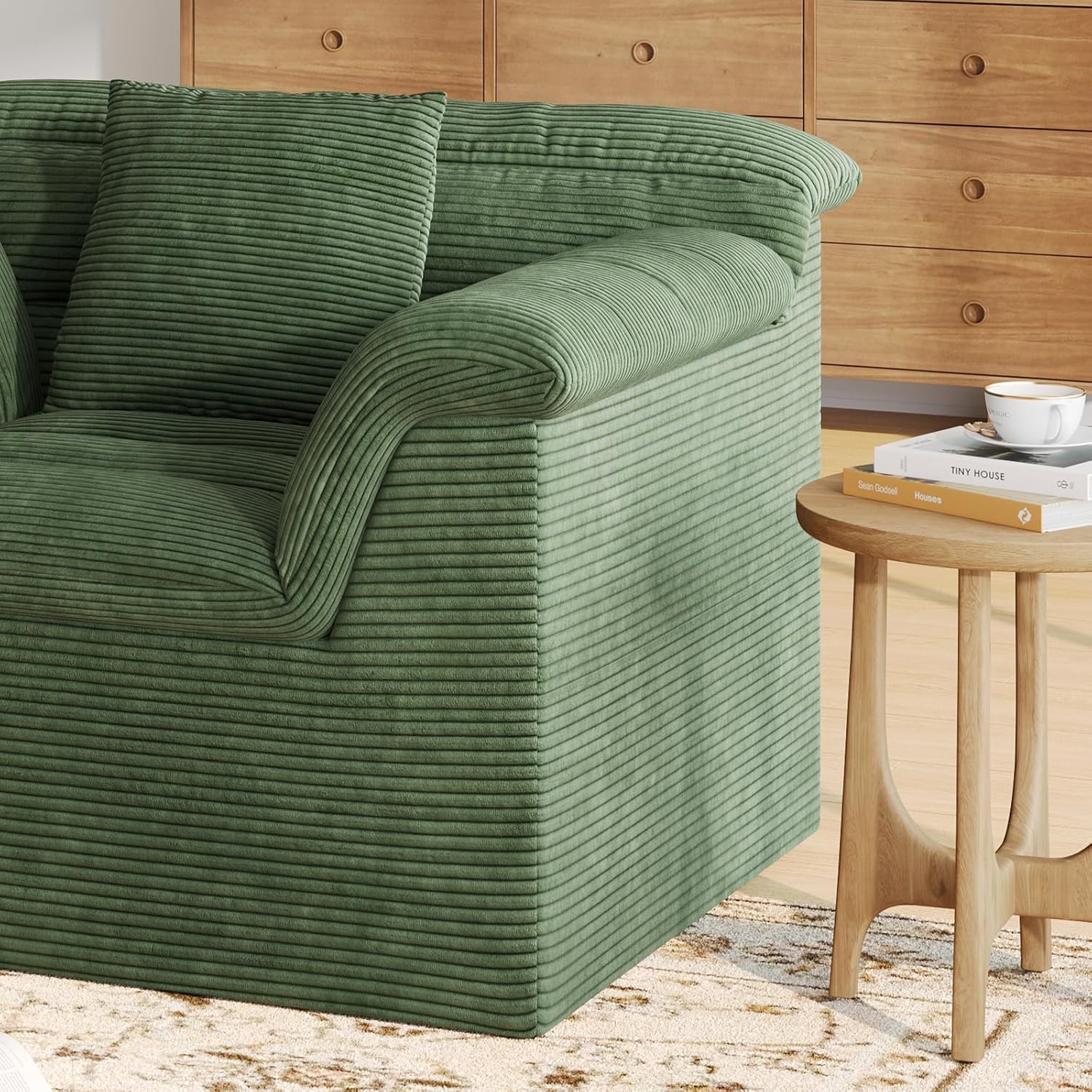 51″ Cloud Sectional Couch, Modern Modular Sofa with Deep Seat, Comfy Compressed Single Sofa, Upholstered Corduroy Couches for Living Room, No Assembly Required, Green