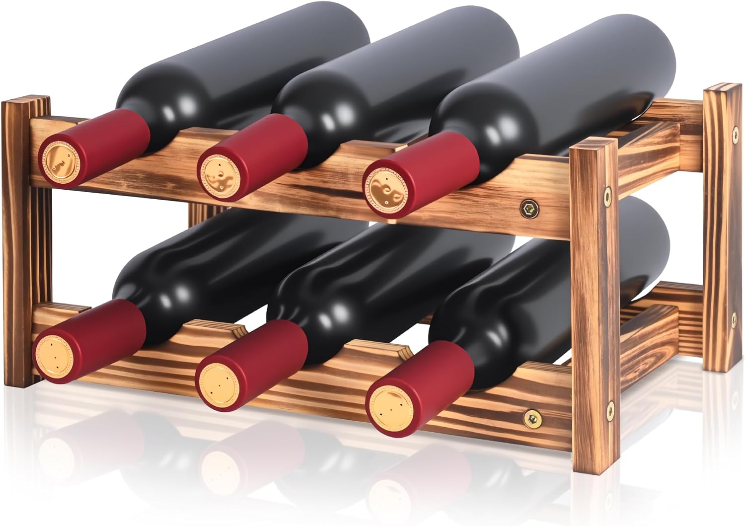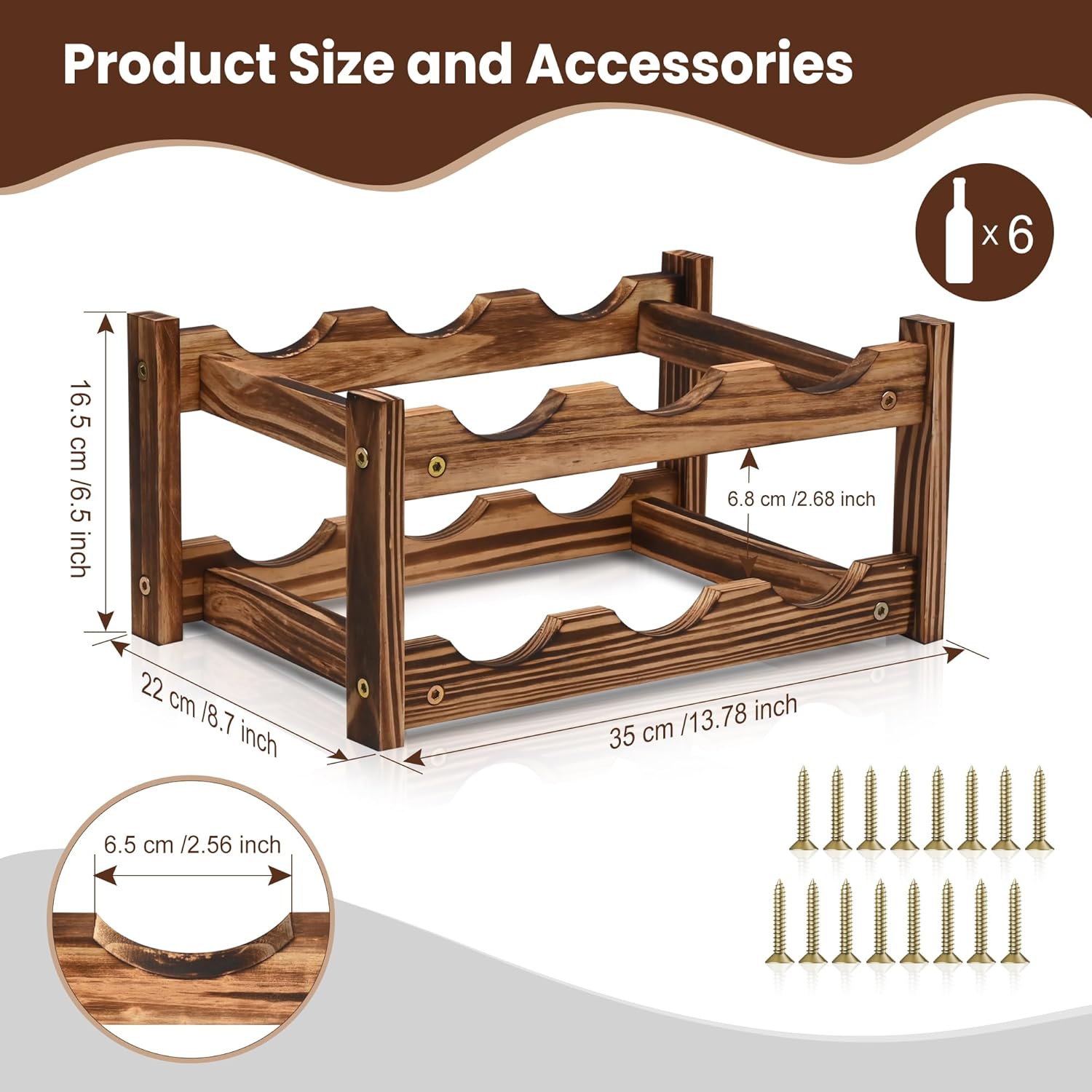 6-Bottle Wooden Wine Rack – 2-Tier Tabletop Countertop Space-Saving Wine Holder with Screwdriver Included, Easy Assembly Wine Storage Shelf for Kitchen, Bar, Pantry & Home Decor
