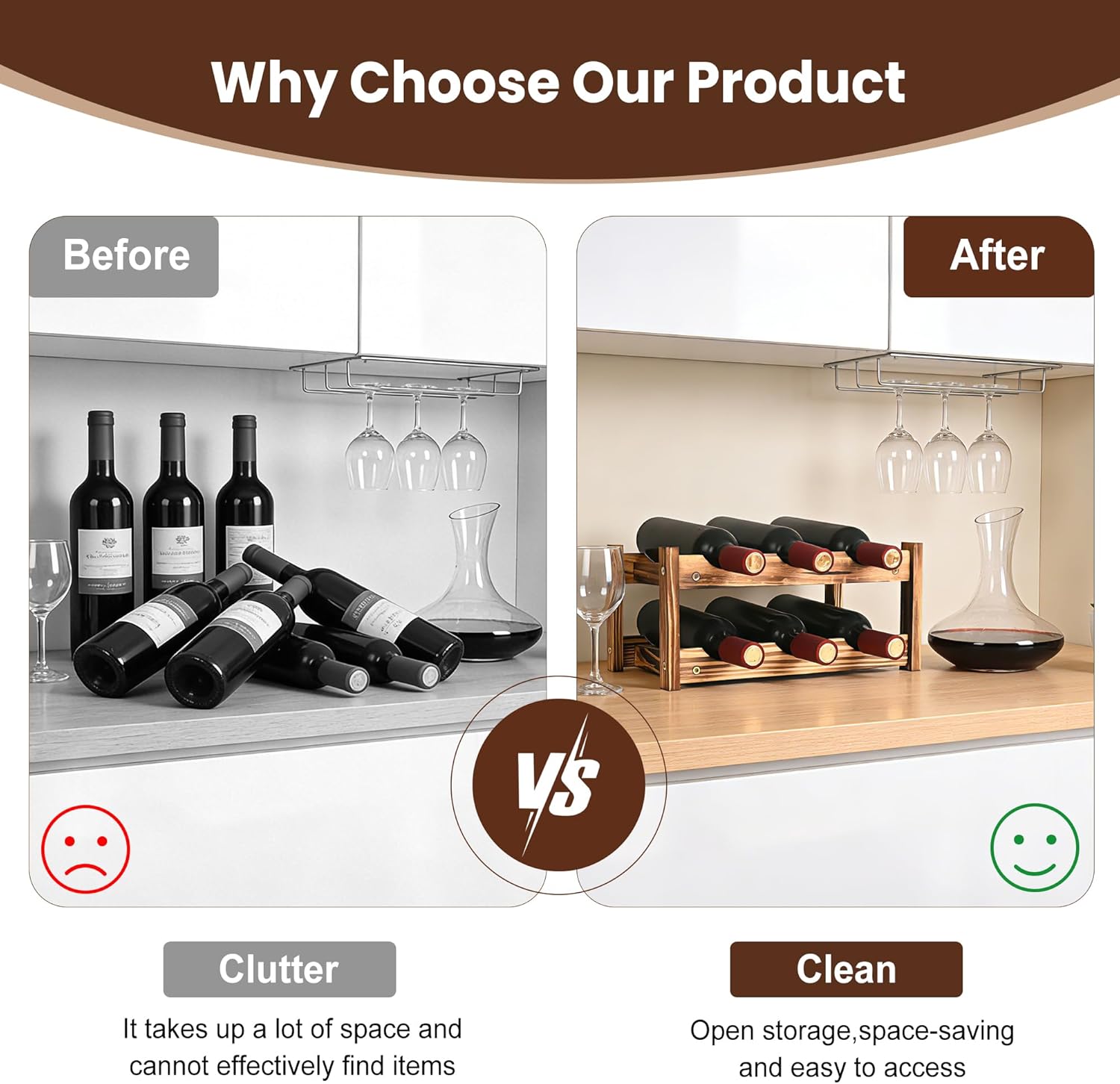[Compact 2-Tier Wine Storage] Space-saving countertop design holds 6–9 bottles securely—great for kitchens, home bars, dining areas, and pantries.