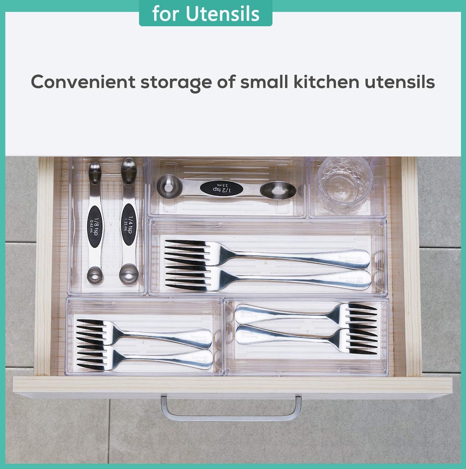 VERSATILE SET: Complete 6-piece drawer organizer set perfect for organizing kitchen utensils, office supplies, or bathroom essentials