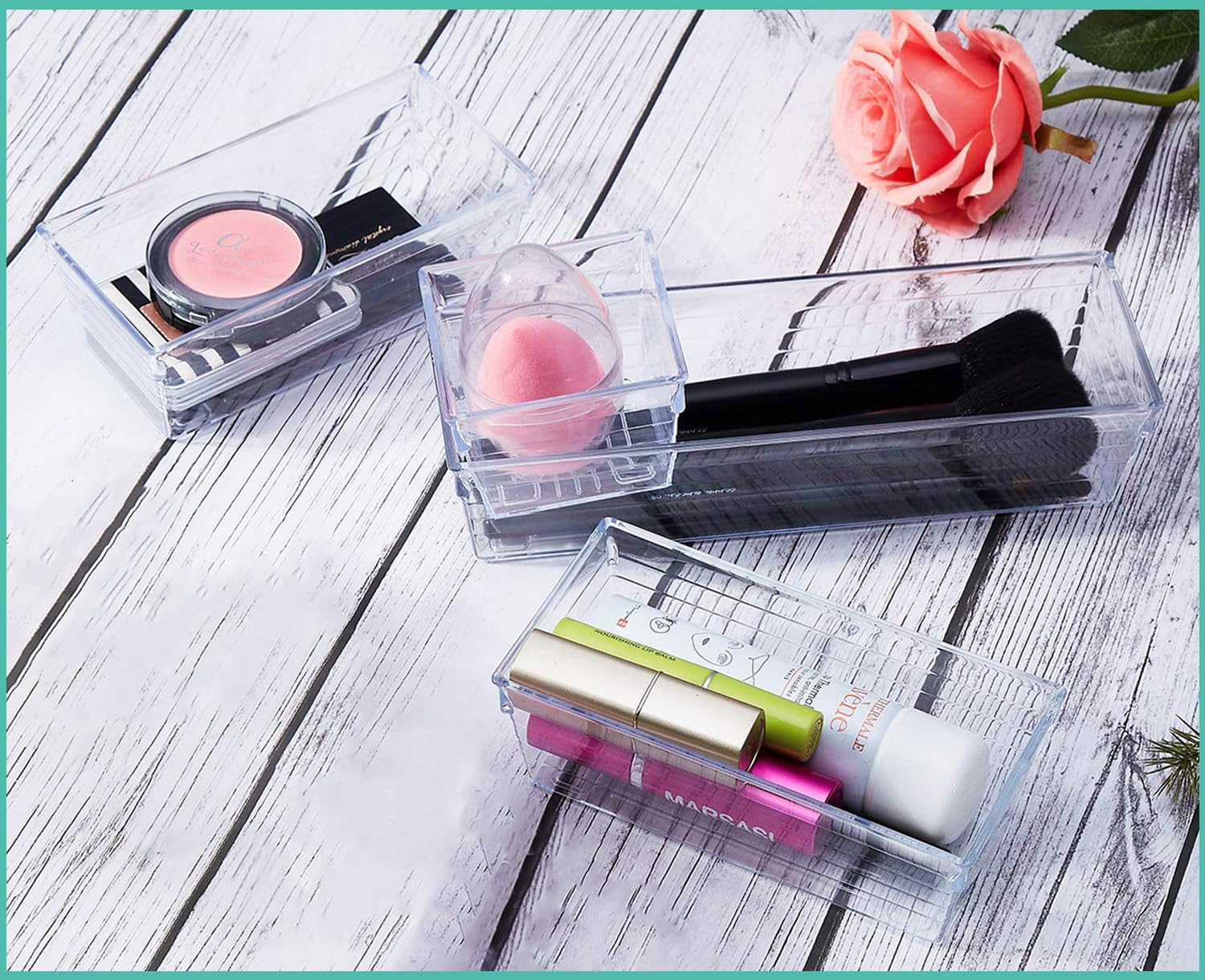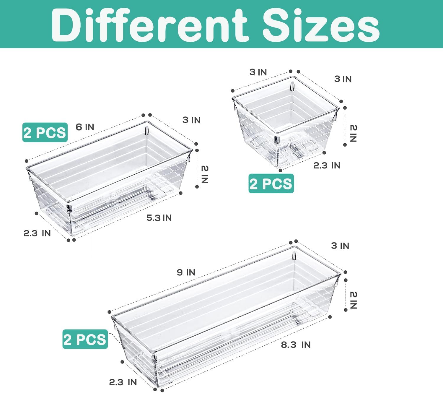 6 Pack Clear Drawer Organizer, Acrylic Drawer Storage Trays, Storage Bins for Makeup, Cosmetics, Jewelries, Utensils, Gadgets, Office