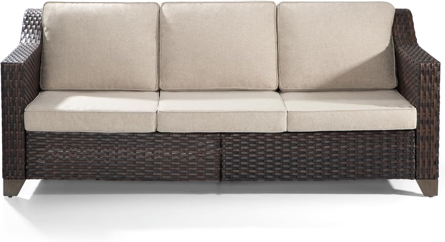 CLASSIC BROWN PE WICKER: The patio sofa is adopted with classic brown rattan design, the sofa is considered as an ideal addition to your porch patio or deck. All rattan were elaborately woven by experienced workers and strictly tested. They are all-weather resistant and can retain their color against sunlight
