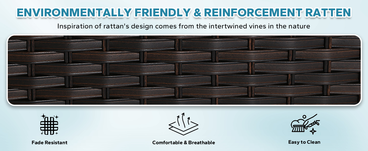 Exquisite Design: Inspiration of rattan’s design comes from the intertwined vines in the nature. The furniture has smooth and graceful lines, and the simple and elegant design adds a touch of elegance to your terrace