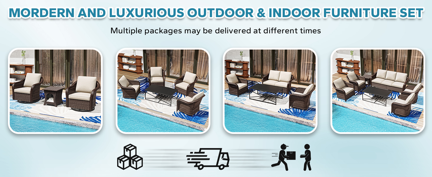 Sturdy and Durable: The outdoor furniture set is made of steel frame and PE wicker, ensuring that it will be more sturdy. Fade-resistant fabrics of cushions is stain & fade resistance, tear & wear resistance