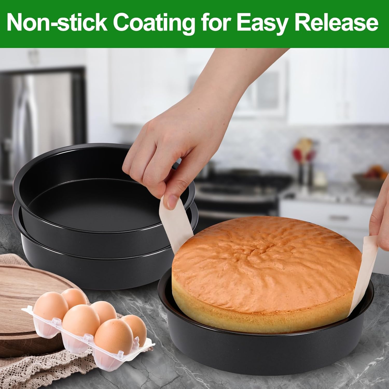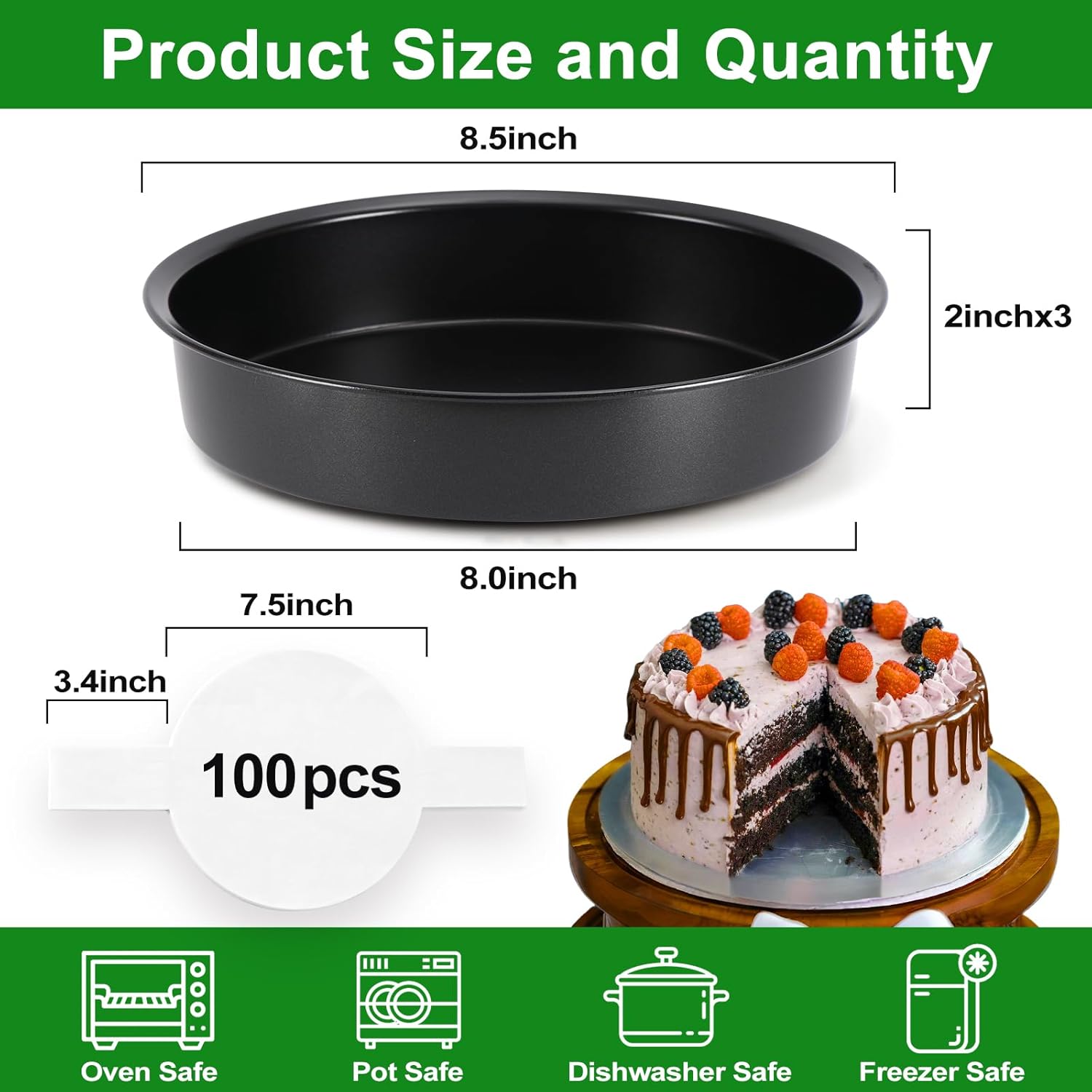 【100 Pcs Parchment Papers】The 8 inch cake pan set comes with 100 parchment papers, made from natural wood pulp can be in direct contact with food. The cakes can be easily removed from the round cake pans, ideal for baking enthusiasts and beginners.