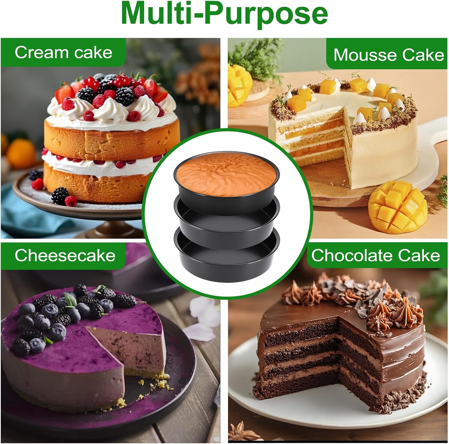 【Premium Materials】Our cake pans are made of high-quality carbon steel, durable, not rust, not easy to be deformed. The cake pan has excellent heat conduction, even heating for the cakes, perfect for making layered cakes or deep dish pizza.