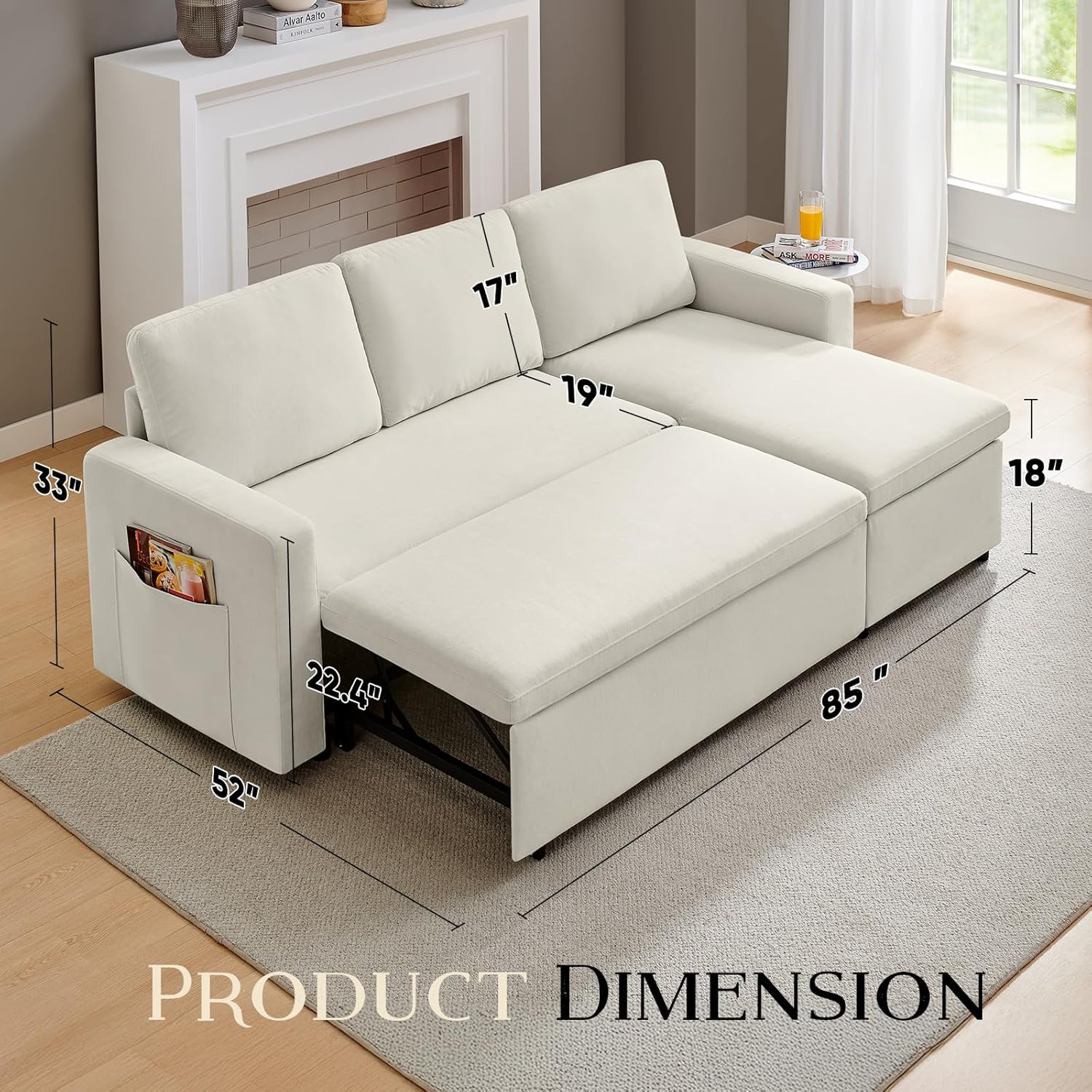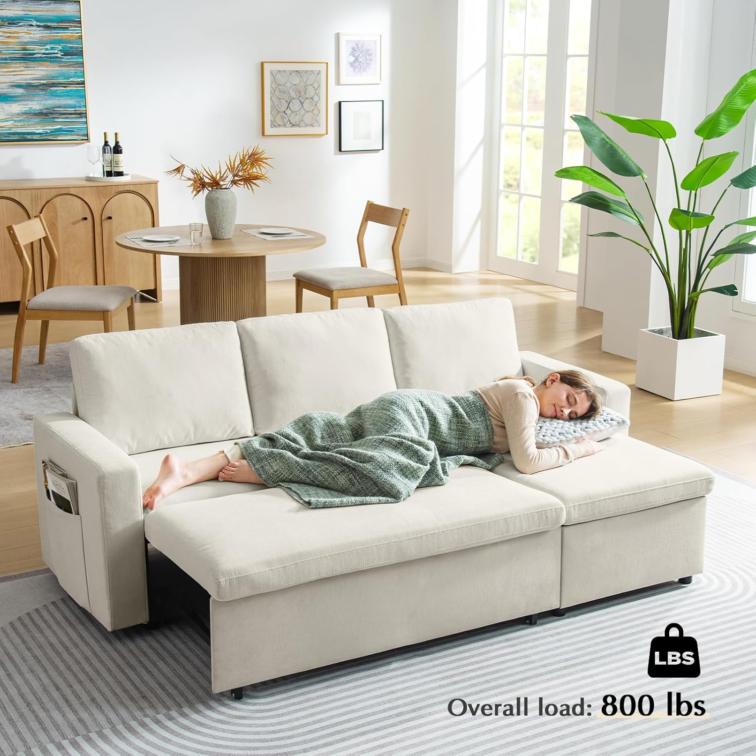 85’’ Sofa Bed, 2 in 1 Sleeper Sofa with Multiple Storage Spaces and Detachable Chenille Cover, Easy to Assemble, Comfy Futon Pull Out Couch for Living Room/Office/Apartment
