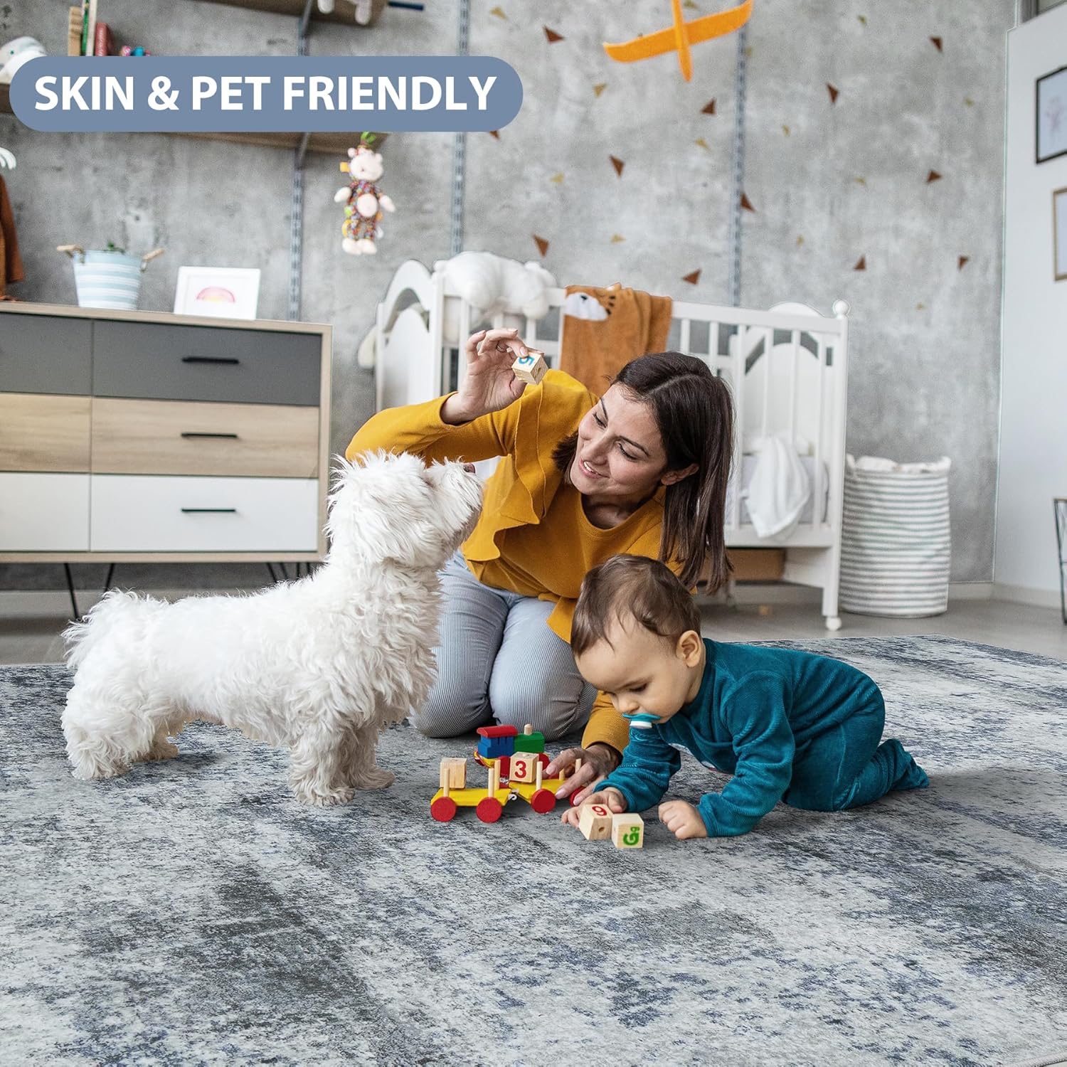 Non-Slip & Safe: With upgraded anti-skid rubber backing, this rugs for living room resists abrasion and prevents sliding on wood, marble, or tile floors. Ideal for homes with kids or elderly family members