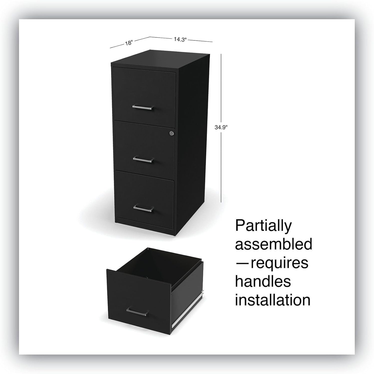 Alera Soho Vertical File Cabinet, 3 Drawers: File/File/File, Letter, Black, 14″ X 18″ X 34.9″