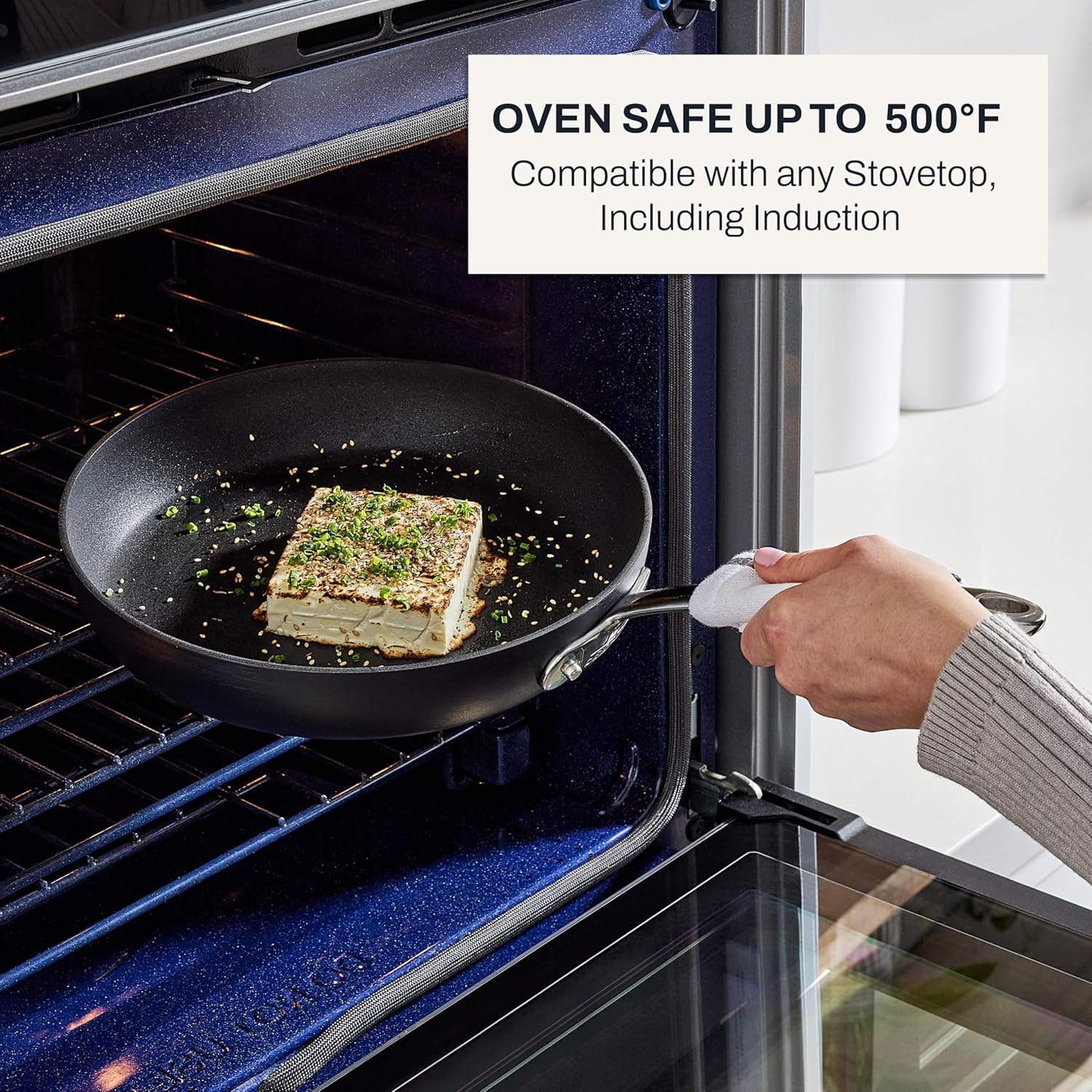Oven safe up to 500°F and compatible with any stovetop, including induction Dishwasher safe To preserve the nonstick, wash your cookware with a soap and sponge, and using silicone, nylon or wooden utensils