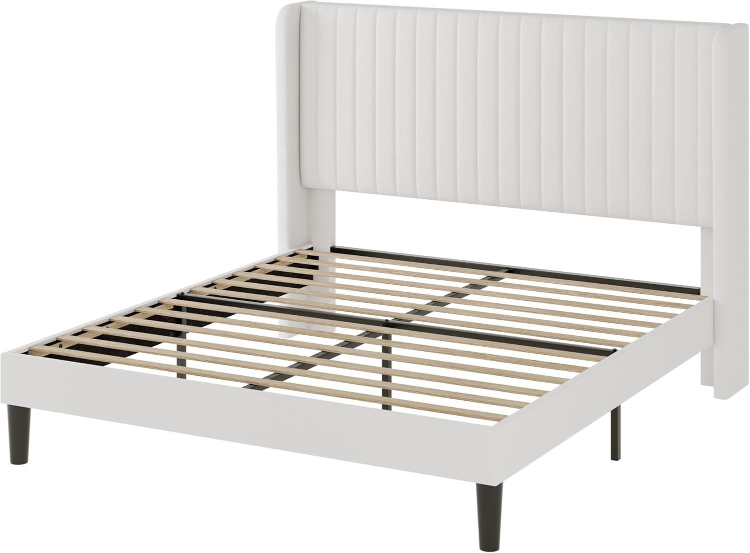 Comfortable and Elegant: Designed in a modern wingback headboard, smooth velvet, and soft sponge wrap the entire bed frame, which will add sophisticated style to any bedroom