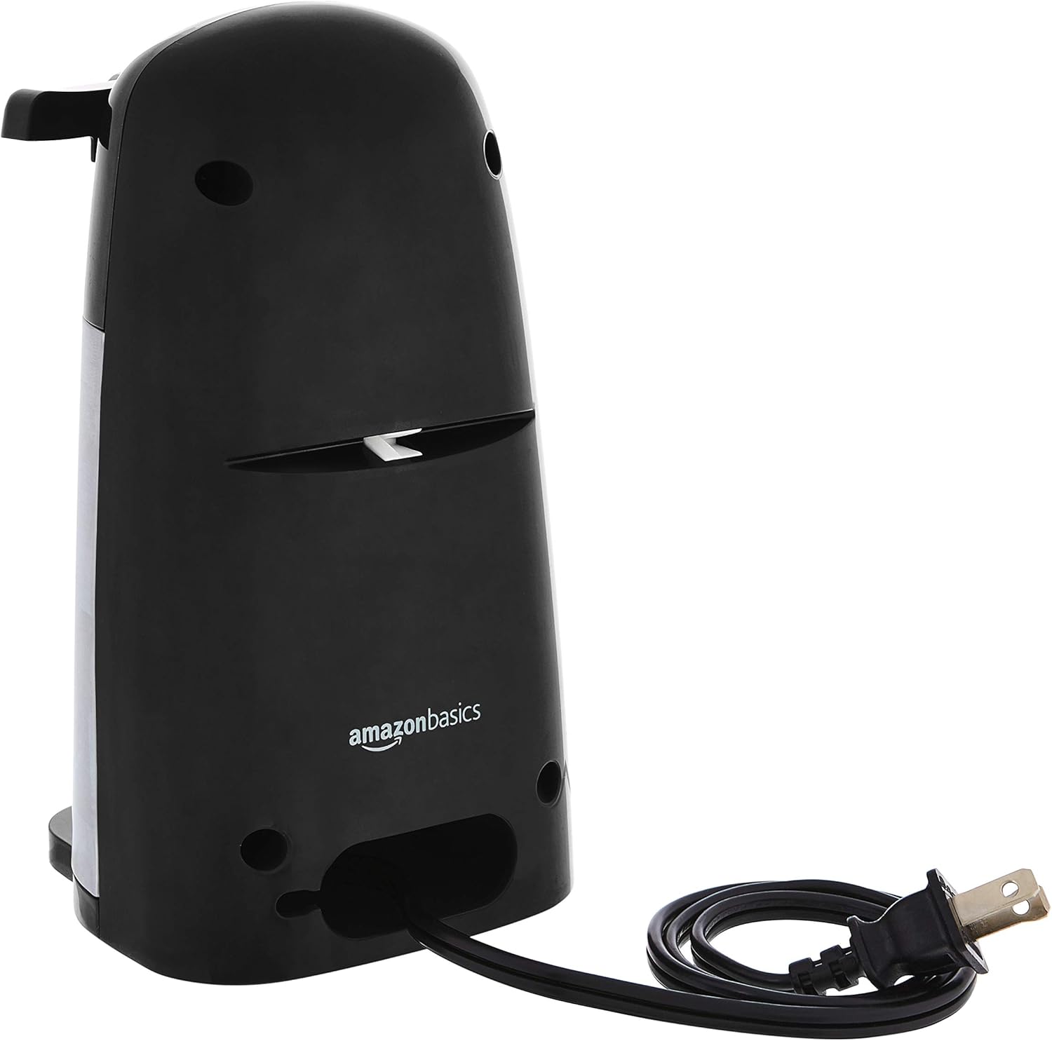 Amazon Basics 3-In-1 Electric Can Opener, Bottle Opener and Knife Sharpener, with Stainless Steel Blade, Magnetic Lid Holder, Automatic, Countertop, 50W, Black