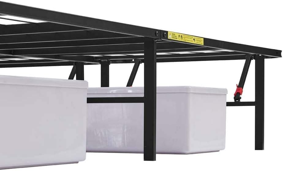 Amazon Basics Bed Frame with Storage, Foldable Metal Platform, Sturdy Steel, No Box Spring Needed, 14 inches High, Tool-Free Setup, Full Size, Black