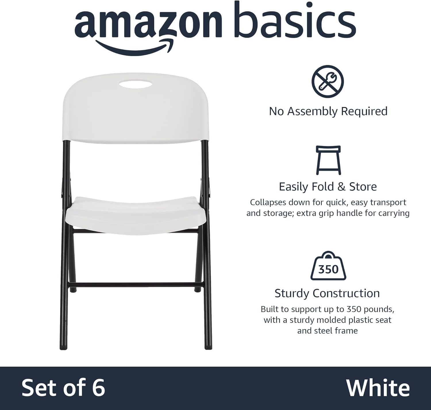 Amazon Basics Sturdy Foldable Plastic Chair, Portable, 350-Pound Capacity, White, 6-Pack