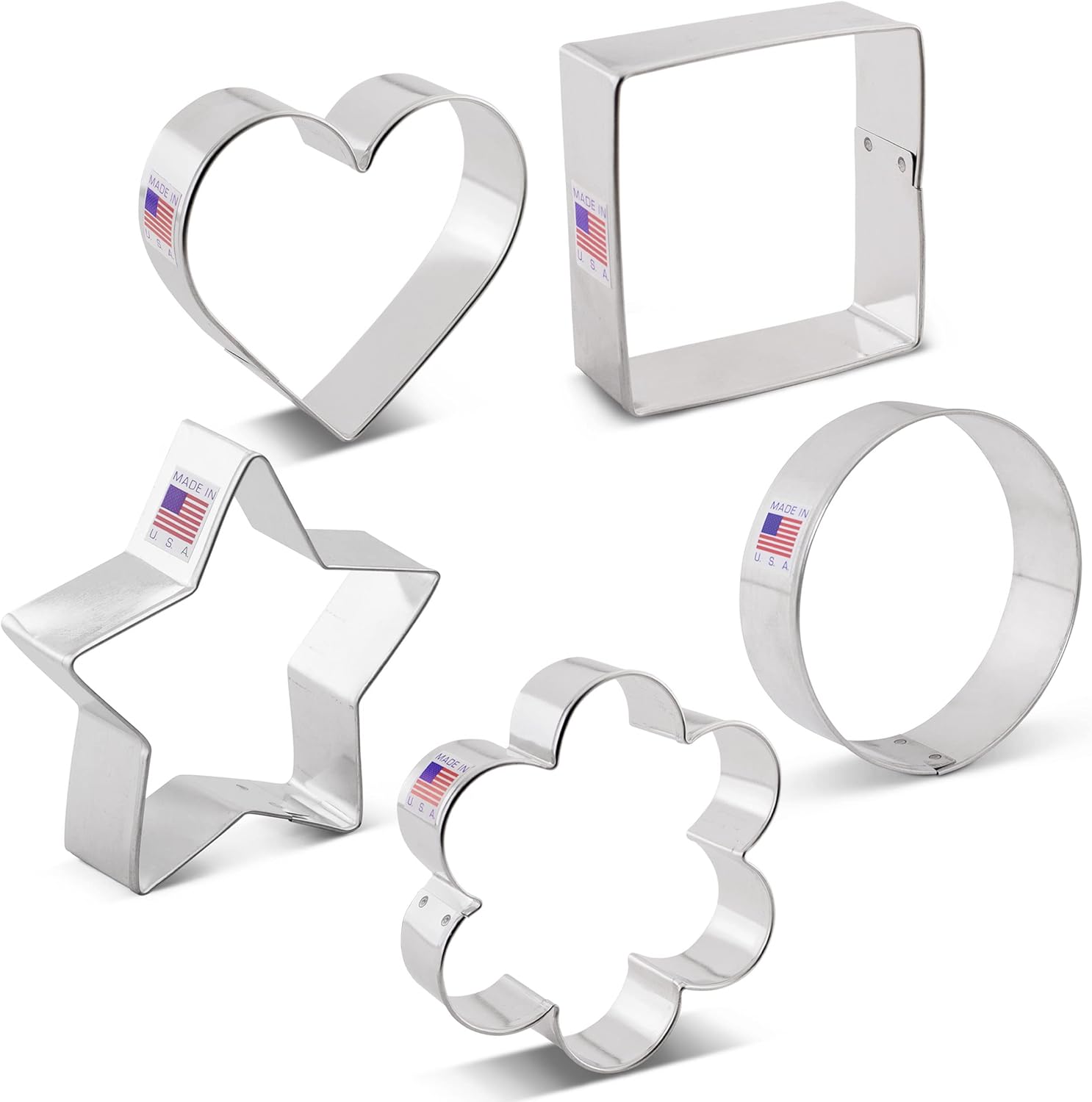 Ann Clark Basic Cookie Cutters 5-Pc. Set (Star, Heart, Circle, Square, Flower) Made in USA