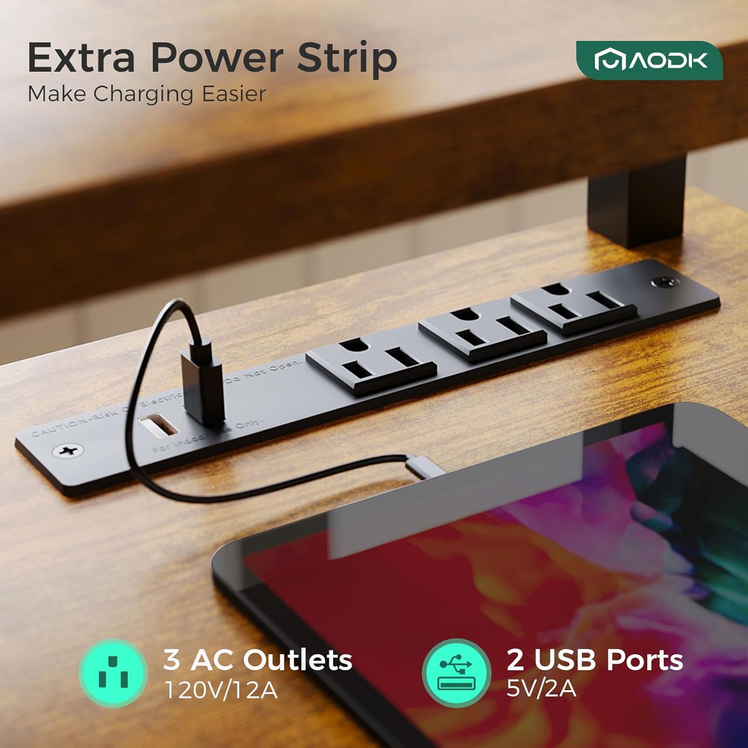 Power & LED Lights: This AODK Standing desk includes a built-in power outlet with 3 Outlets & 2 USB Ports to charge your devices. Also, you can use the LED Lights to vary the 20 light modes to bring various atmospheres to your space.