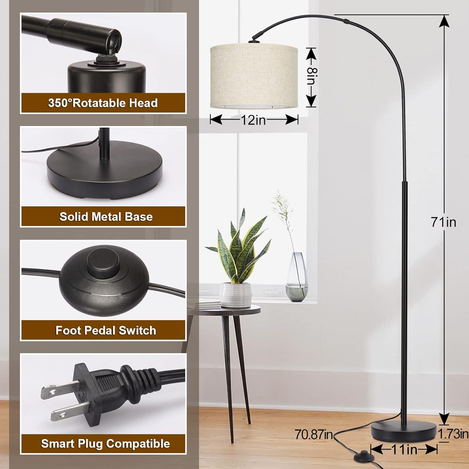 The floor lamps over couch for living room bring a simple, unique, and mid century illuminating statement, featuring an adjustable lampshade, stable base and easy reach foot switch, fits any space perfectly.