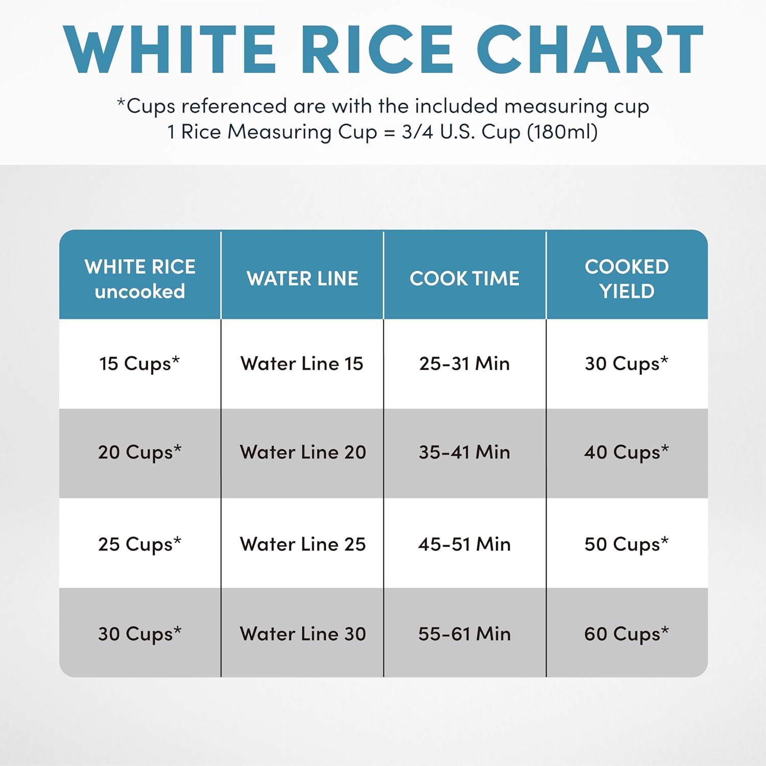 Largest Capacity – Enjoy Aroma’s powerful and proven cooking technology in an even larger size! Pour in 30 cups of raw rice to prepare 60 perfectly cooked cups in total.