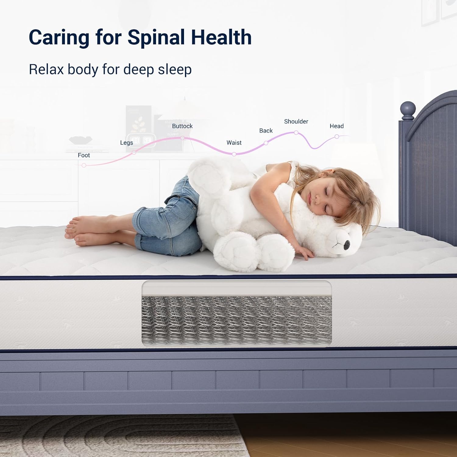 Medium Soft Feel with Reliable Support: Ideal for kids and teens, this 8 inch twin mattress delivers a medium-soft feel with balanced layering. This Foam and spring hybrid twin size mattress maintains healthy spinal alignment for back, stomach, and side sleepers through the night