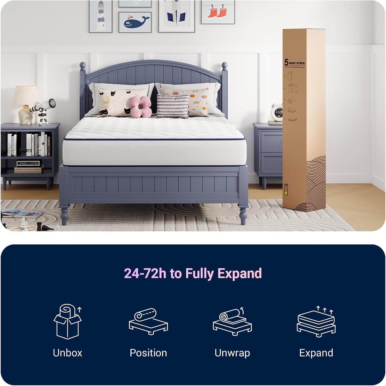 Easy Setup with Bed-in-a-Box Delivery: Your twin mattress arrives compressed and rolled in a box. Simply unbox, unroll, and allow 24–72 hours for full expansion to its original 8 inch thickness