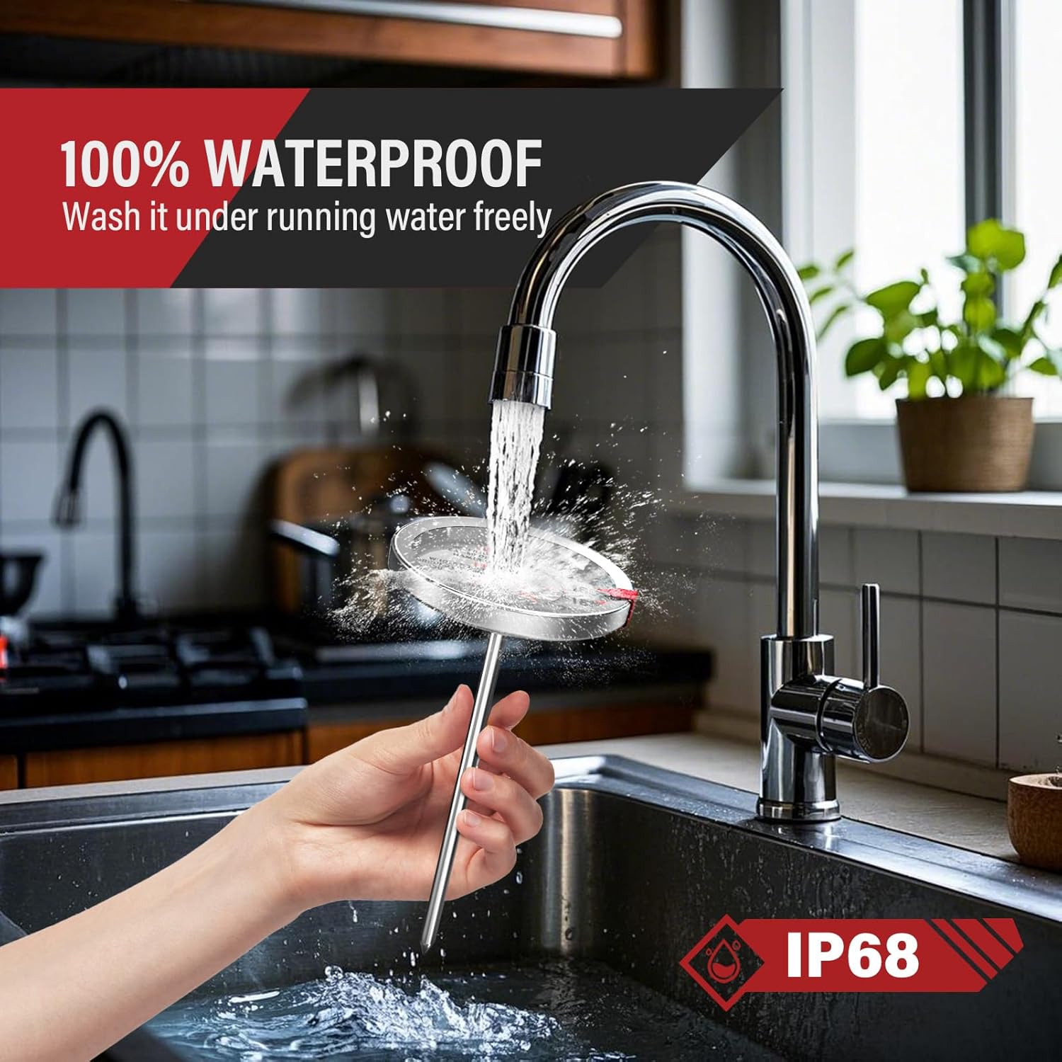 Jumbo 2.5-Inch Dial, Instant-Read Clarity — The oversized dial with bold markings ensures visibility from across the kitchen. No squinting needed—get instant temperature readings for meat, or candy with 1-second responsiveness