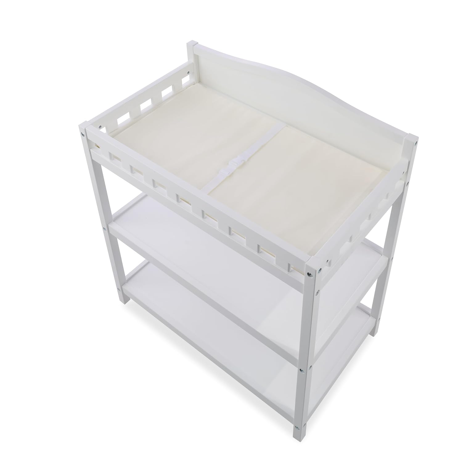STORAGE FOR DIAPERS & BABY ESSENTIALS – Two wide shelves hold everything from diapers to lotions, wipes, and towels. This baby changing station helps keep your nursery organized and clutter-free.