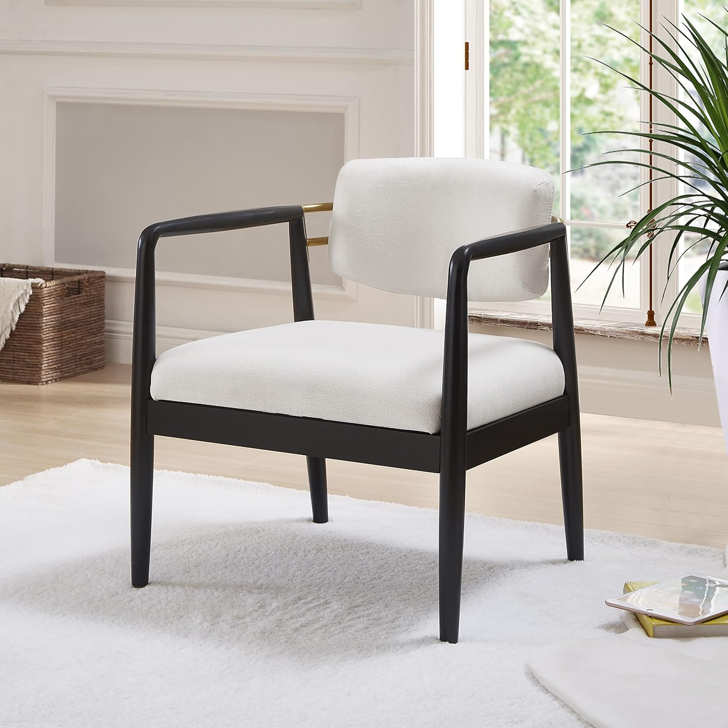 ✔ VERSATILE USAGE: Modern accent sofa chair matches perfectly with any decor theme. Soft ivory fabric matches with black solid wood, gold iron embellishment in the backrest offers an extra touch of sophistication designing.