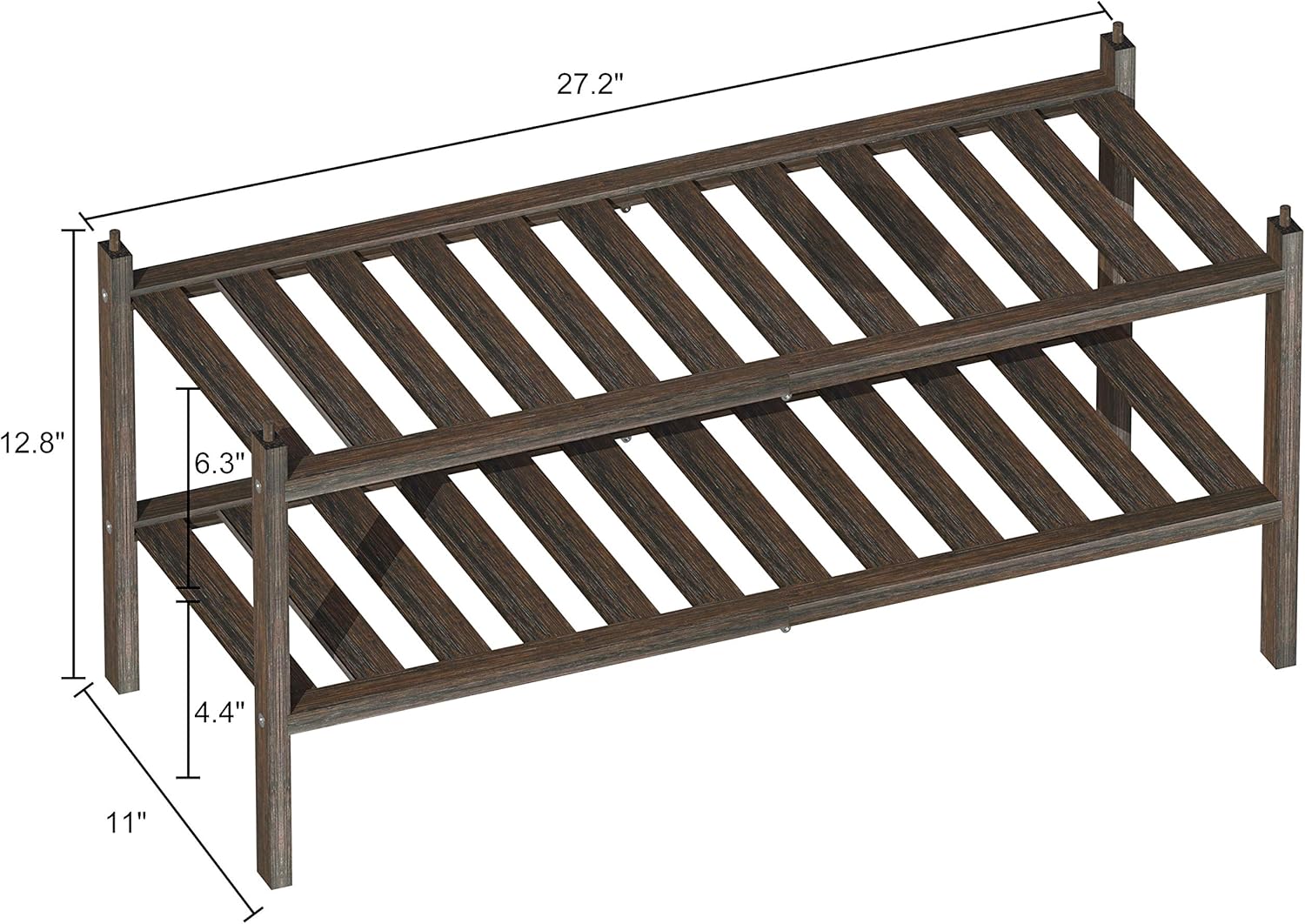 Bamboo 2-Tier Shoe Rack Stackable Shelf Storage Organizer for Entryway, Hallway and Closet, 27.2″x11″x13.2″ (Mocha)