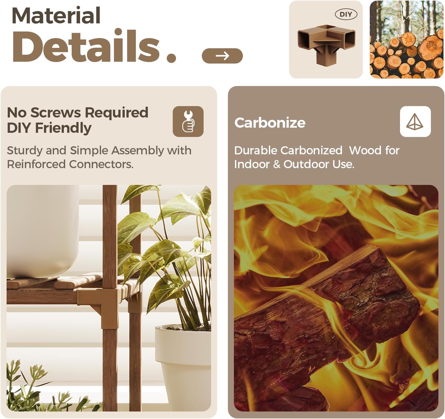 Durable and Sturdy:This plant stand requires no screws, making it perfect for DIY enthusiasts. Utilizing the clever application of the triangular stability principle, it enhances stability. Additionally, plastic joints reinforce the structure of the plant stand, ensuring its durability.