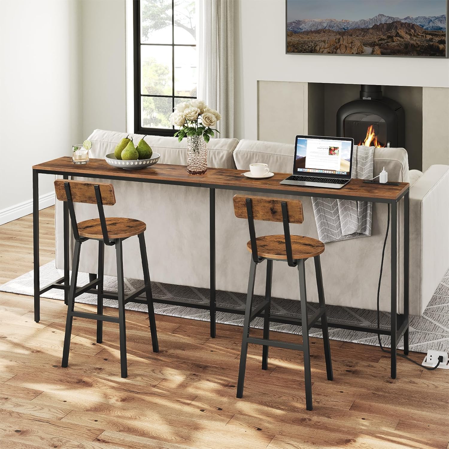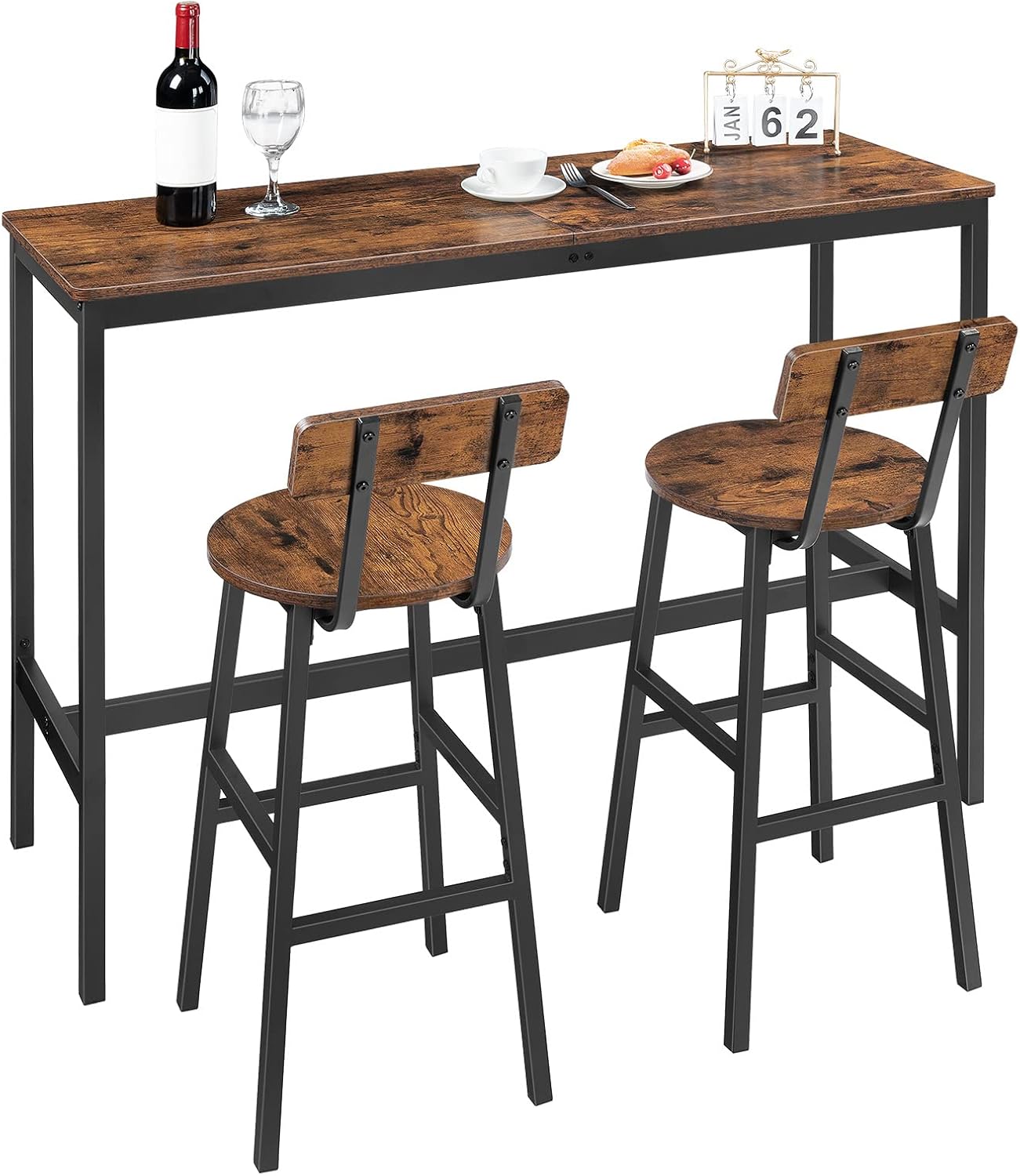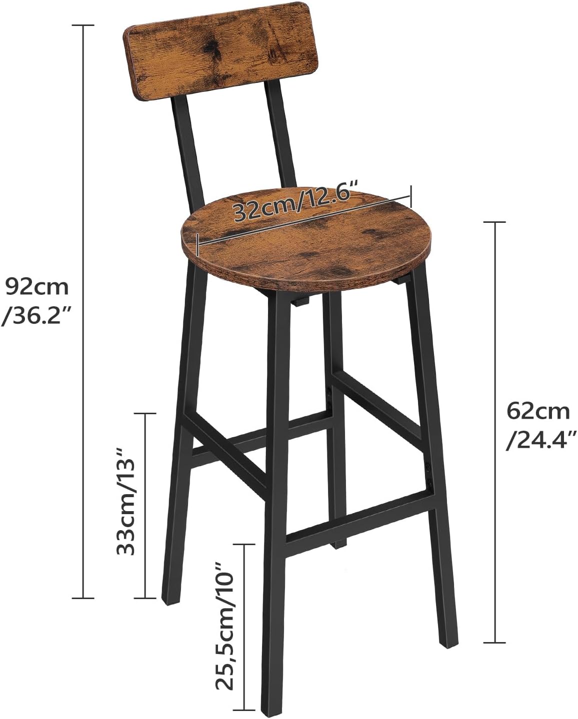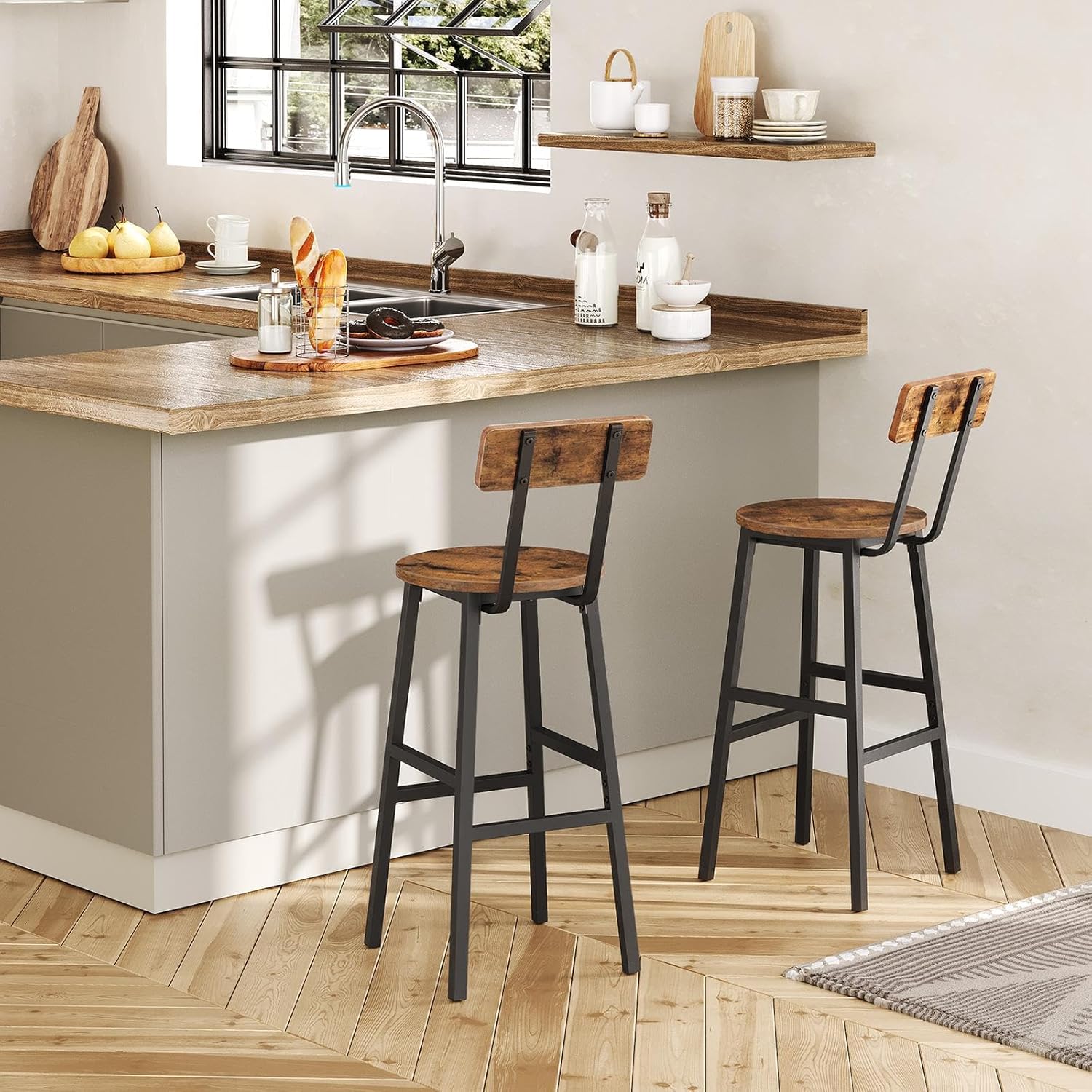 Rustic Look with Delicacy: With wood grain finish and metal legs in matte black, each bar stool presents its nobleness and versatility in any places to set off the style and temperament of the whole home, showing the quality of life