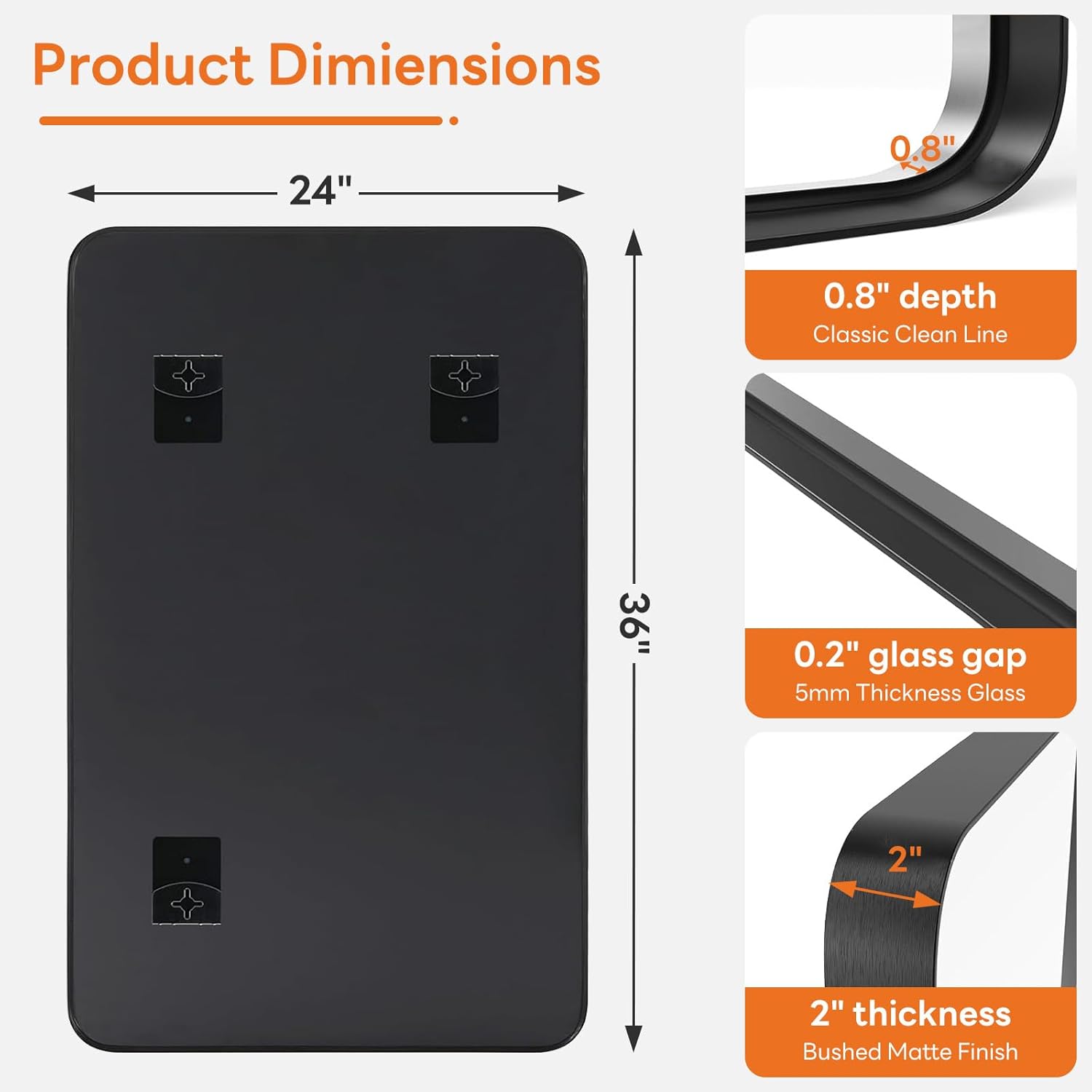 🖤 Modern Matte Black Frame: Featuring a rounded rectangle design, the matte black mirror for wall is framed in rust-resistant brushed aluminum alloy, adding a modern, sleek aesthetic that complements farmhouse, industrial, or minimalist décor.